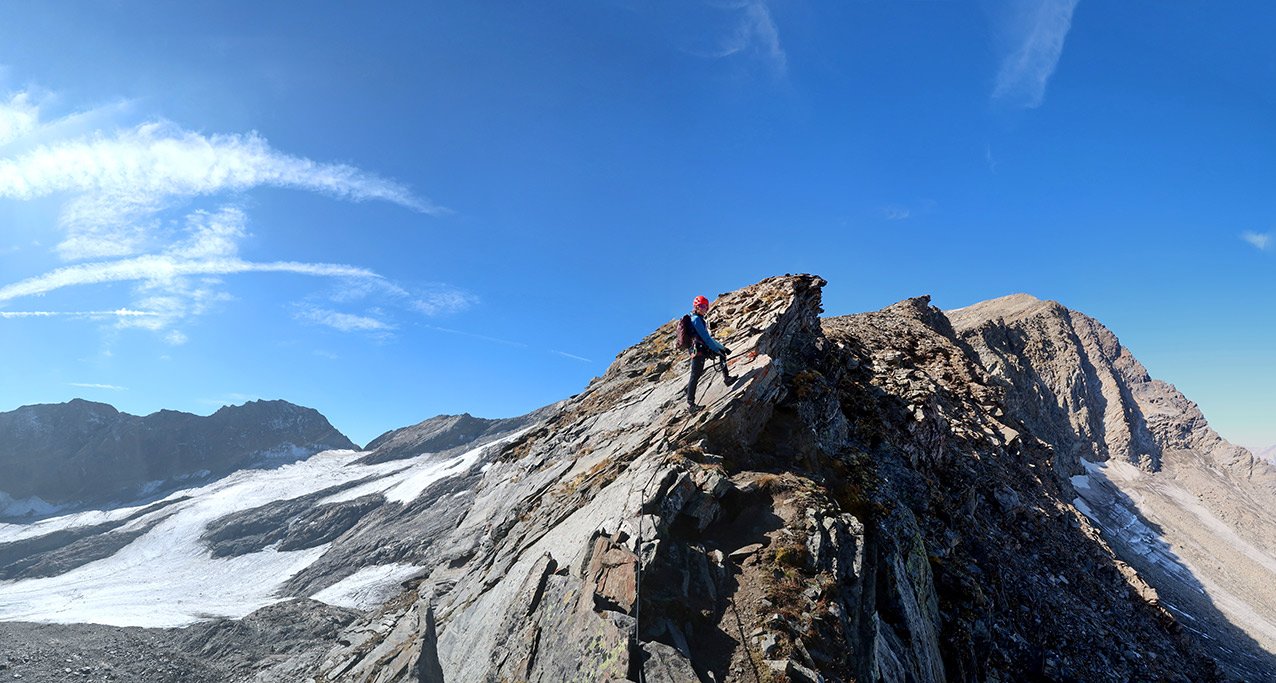 Der Kristallwand Klettersteig ermöglicht eine gletscherfreie Besteigung dieses markanten Berggipfels unweit der Venediger-Eisriesen. Die Ferrata hat an diesem Tourentag aber nur eine Statistenrolle, es zählt das gewaltige Gesamterlebnis, welches man - die nötige Kondition vorausgesetzt - auch an einem Tag machen kann. Der sehr lange Zustieg und der Abstieg sind die Skills, welche es zu meistern gilt, am Ende stehen ca. 2300 Höhenmeter, 30 Kilometer und 10 Stunden auf dem Tacho (wenn man mit dem Fahrrad den Zu- und Abstieg verkürzt). Warum man diese Tour machen sollte - das Frosnitztal ist eines der schönsten Täler im Nationalpark Hohe Tauern, wenn man an der malerischen Zedlacher Frosnitzalm mit den 12 Steinhütten vorbeikommt, glaubt man, die Zeit ist stehen geblieben. Die Tour ist ein Muss für Naturliebhaber mit der nötigen Grundkondition, wer es lieber gemütlicher angeht, nimmt die Badener Hütte als willkommenen Stützpunkt.