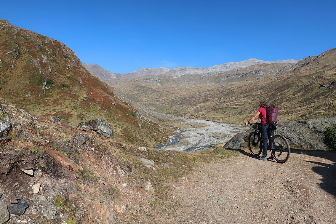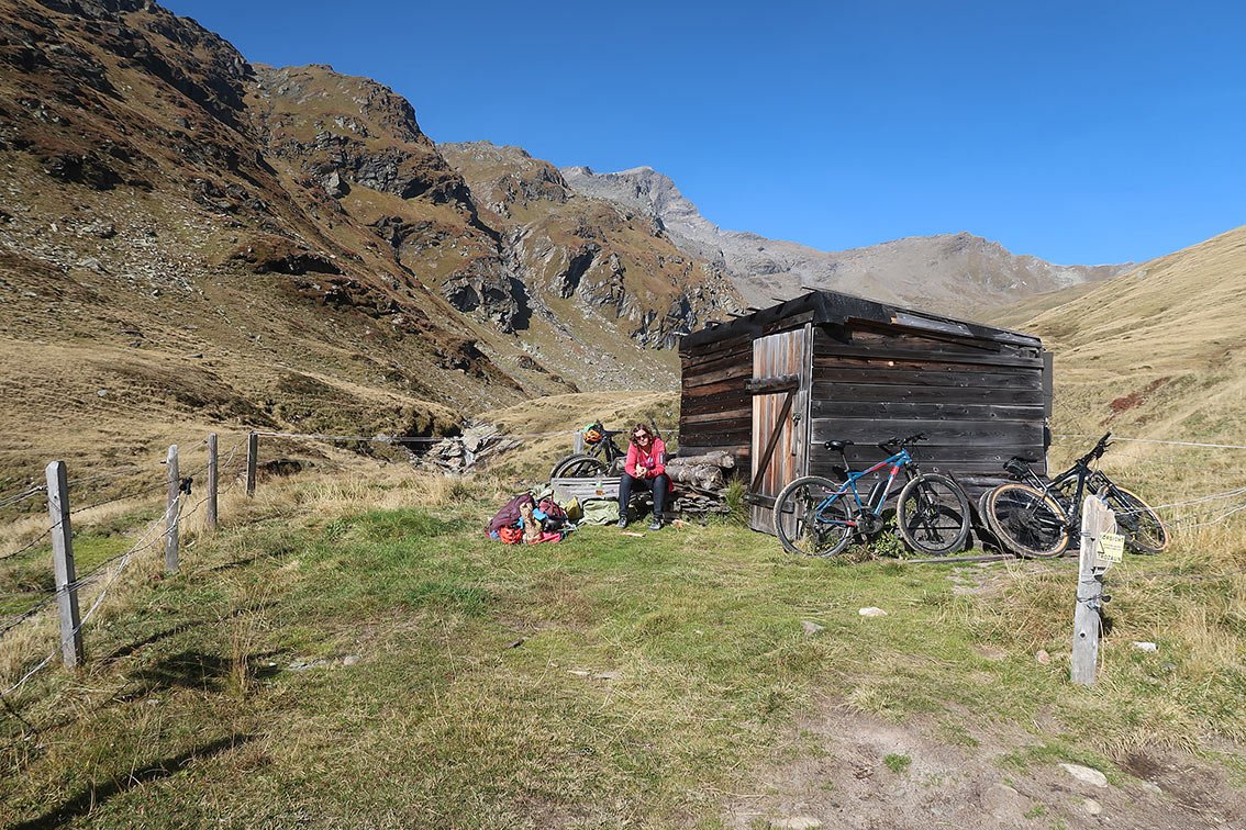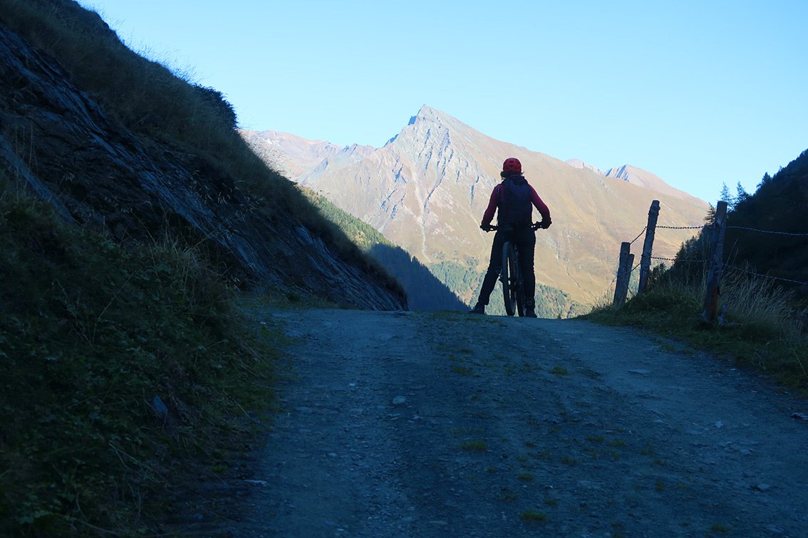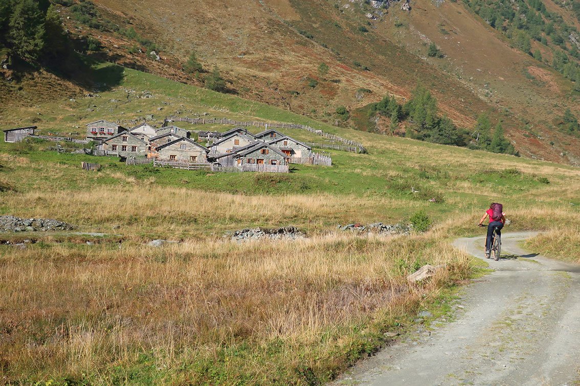 Bergfahrrad: Wir haben die Tour mit dem Mountainbike als Zustiegs- und vor allem als Abstiegshilfe gemacht. Die Straße im unteren Frosnitztal ist aber sehr steil und hat einen unguten Splitt-Belag (wer nicht gute Abfahrtstechnik besitzt, wird dort mit seinem Bike keine Freude haben). Im Frosnitztal herrscht offiziell Fahrverbot (bei Unfällen evtl. ein Versicherungsproblem). Vom Ende der Fahrmöglichkeit braucht man bis nach Gruben im Abstiegssinn mit dem Bike ca. 1 Stunde. Wer mit dem Muskelbike diese Tour auf sich nimmt, bekommt von den Almhirten Respekt - E-Bike-Horden sind im Frosnitztal aber nicht erwünscht (es braucht auch - wie schon gesagt - für die steile Schotterstraße sehr gute Fahrtechnik).