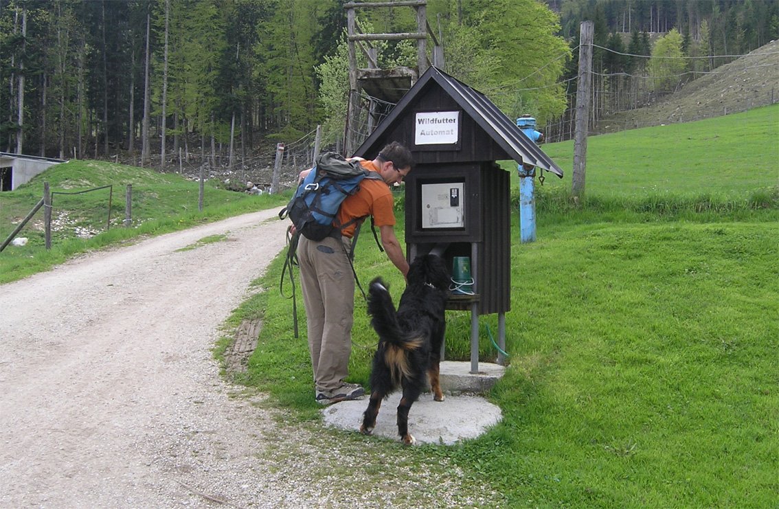 Alternativ kann man beim Ausstieg auf zum Rundwanderweg und diesem links bis zur Forststraße folgen, über die Forststraße steigt man dann wieder zum Almgasthof ab.