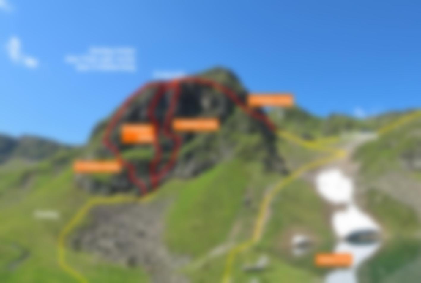 Von der Bergstation des Sennigrat Sessellifts kurz nach Norden, dann in östlicher Richtung die Skipiste hinunter. Bei der Wendestation des Sennigrat Sessellifts links weiter hinunter zum See (mit einer kleinen Hütte). Kurz vor dem See (beim Bach) nach rechts und an der linken Seite der Blockhalde aufwärts zum Einstieg bei einer Tafel.