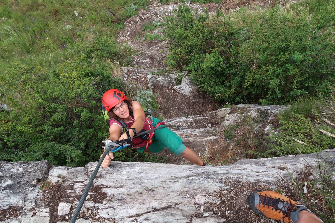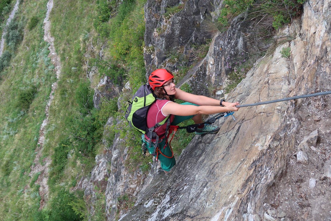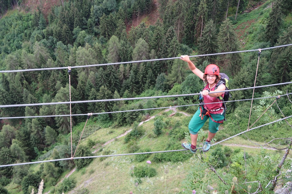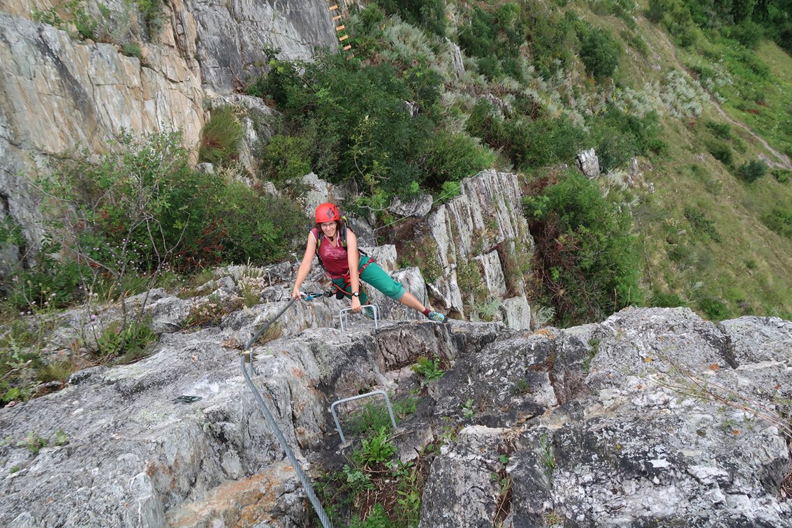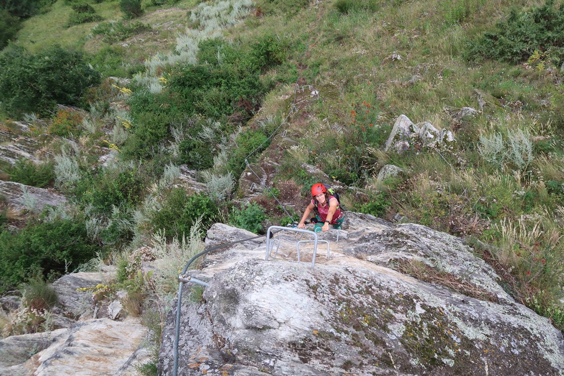 Seit Sommer 2025 ist die Via Claudia der Abstiegsklettersteig (man kann nicht mehr oben aussteigen); vom Talboden wieder auf dem schon bekannten Zustiegsweg zurück zur Seilbahn.