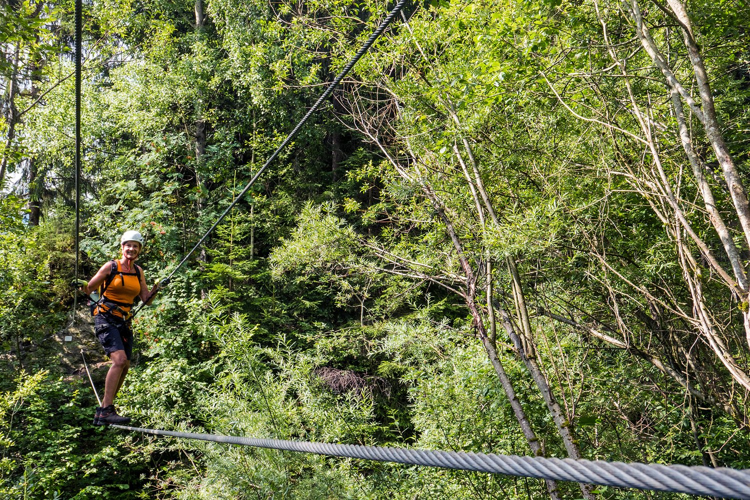 Die Seilbrücken sind lange und schwingen ein wenig (für Ängstliche oder Kinder nicht geeignet). Beim Zu- und Abstieg bitte auf den beschilderten Wegen bleiben!