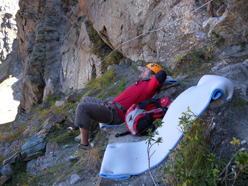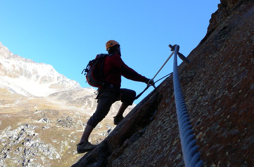 Wer den Klimawandel in Tirol hautnah miterleben möchte, ist bei diesen Klettersteigen genau richtig, denn bei der Balancierbrücke des Erlebnisklettersteiges rauscht im Sommer das Wasser des geschmolzenen Gletschereises mit gewaltiger Wucht direkt unter den Füßen ins Tal. Die vier Klettersteige lassen die roten und grauen Platten - ganz ohne Tritthilfen - ganz der Natur, dennoch sind die Anstiege bestens abgesichert und sowohl für Einsteiger als auch für Experten geeignet