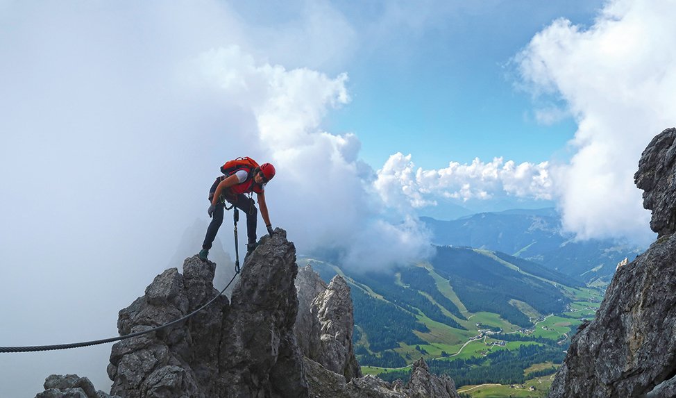 Komplette Klettersteigausrüstung, Klettersteighandschuhe, evtl. Steigeisen