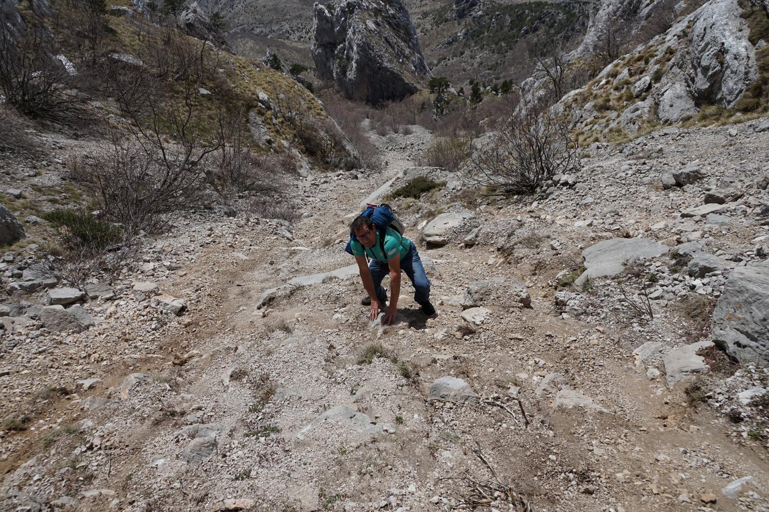 Dieser weg wird oft auch als Abstieg vom Dinaridi Klettersteig publiziert. Wir raten davon ab und empfehlen den einfachen Abstieg weiter östlich.