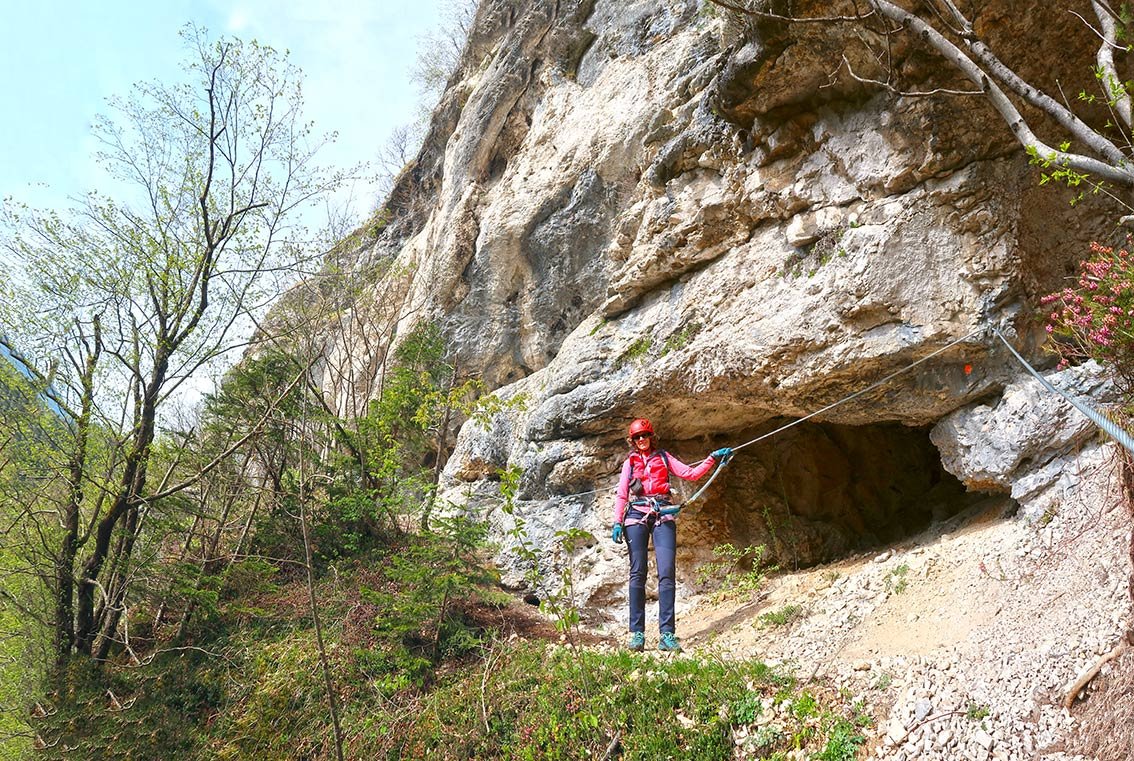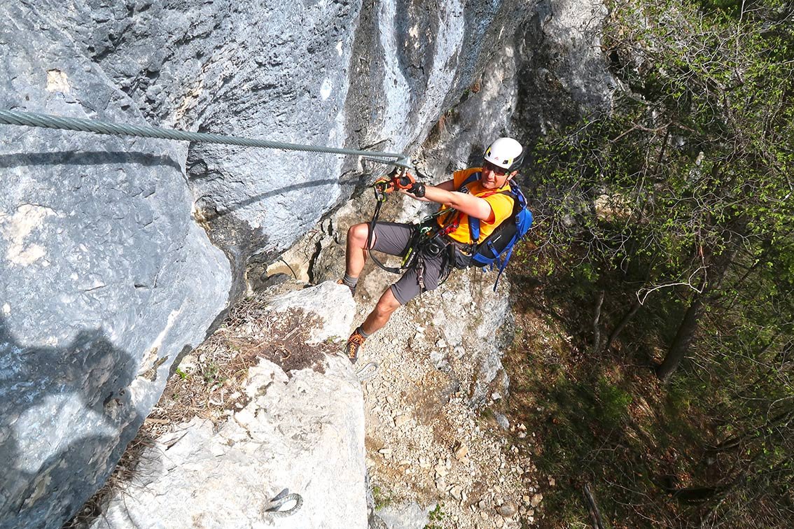 Eine Passage C, oft B/C und B, nur ganz oben wird der Klettersteig leichter. Die Variante bei der Höhle ist C/D.