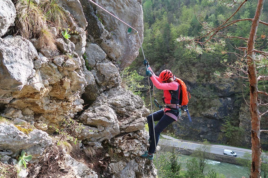 Klettersteigausrüstung und Helm.