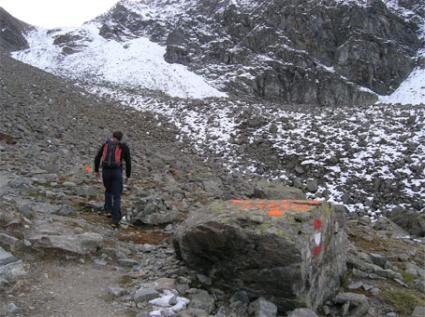 Abzweigung, Bei der gut markierten Abzweigung unterhalb der Gaiskogelscharte, Foto: Axel Jentzsch-Rabl