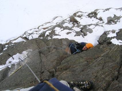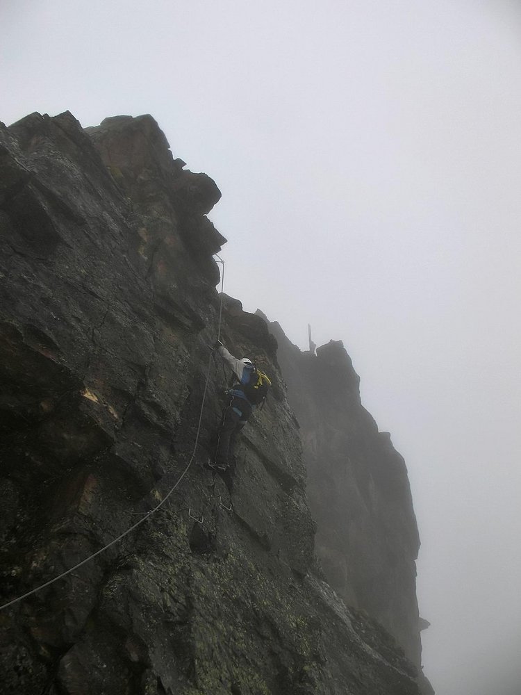 Kurz vor der letzten schweren Stelle unter dem Gipfel.,
