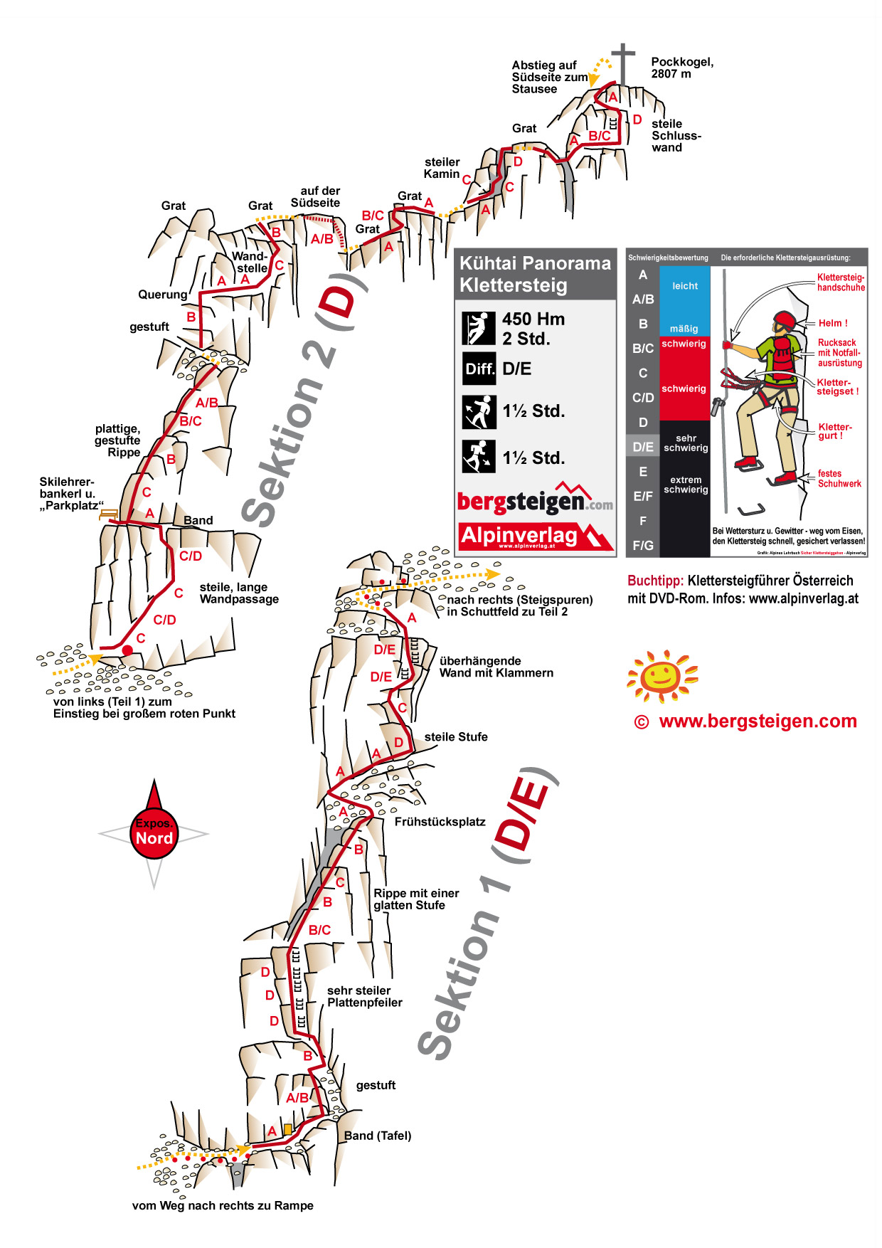 Kletterlänge / Gesamthöhe / Kletterzeit / Gesamtzeit 450 Hm  /  970 Hm
