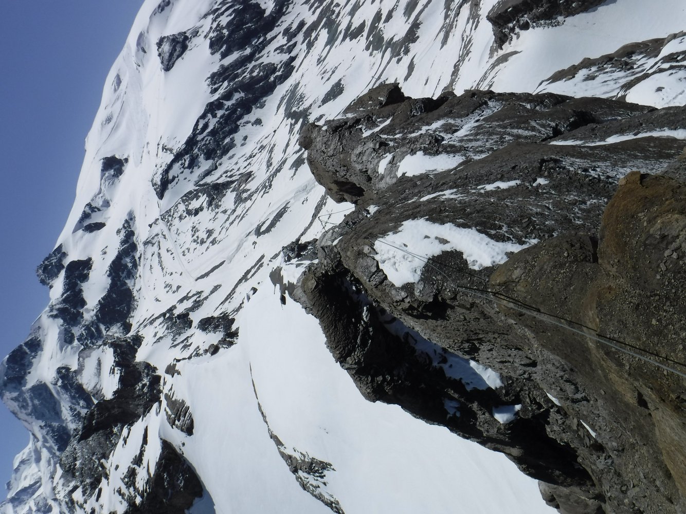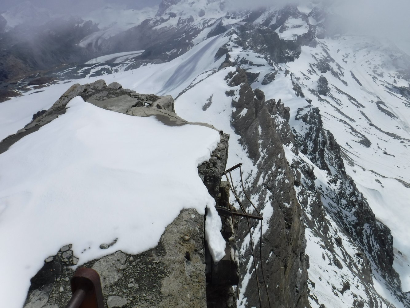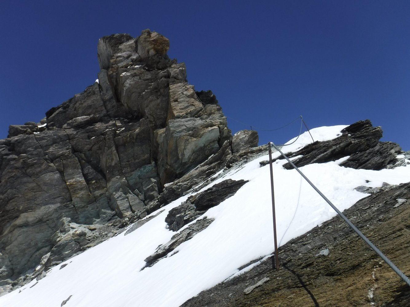Hochalpiner (im Sommer heikler Gletscher) und ernster Klettersteig! Lawinengefahr im Winter beachten. Im Winter ist der Furgggrat bis zum Sicherungseil anspruchsvoll! Die alte Station darf man nur im Notfall betreten (Eingang auf der Westseite).