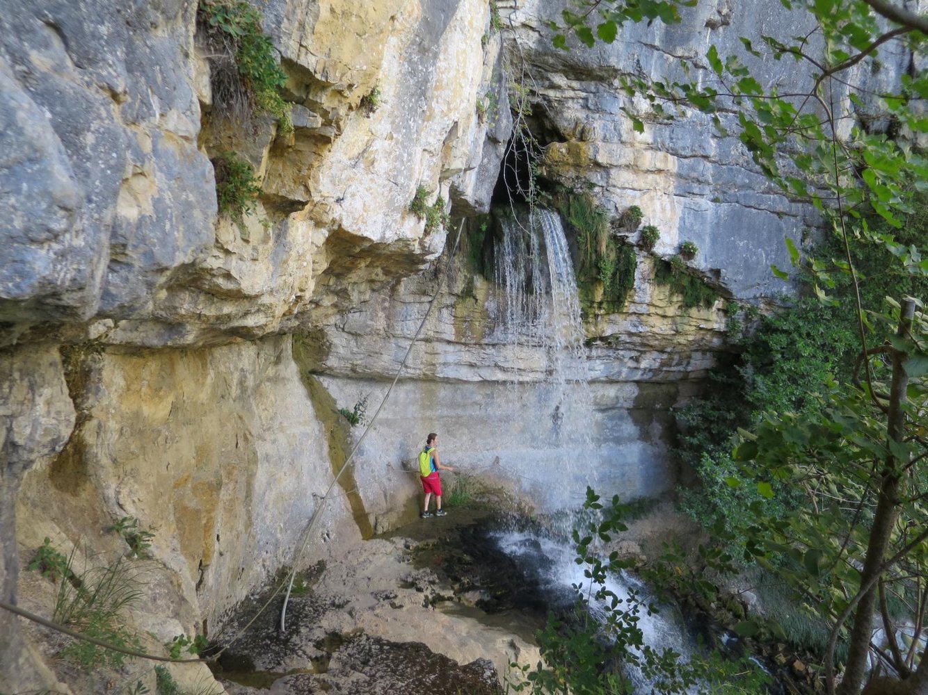 Beim Zustieg sollte man kurz vor dem Klettersteig dem Cascade de la Doriaz einen Besuch abstatten. Der Zustiegsweg führt über die Brücke und man kann davor rechts zum Wasserfall hinauf und (versichert) hinter dem Wasserfall hindurch und wieder auf den Zustiegsweg zurück (siehe Übersicht).