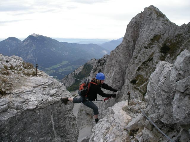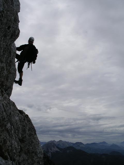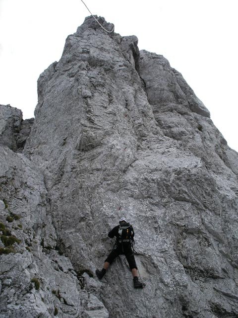 Anspruchsvoller Abstieg: vom Lärchenturm zur Lärchenscharte bis D, am ÖTK-Klettersteig bis B/C.