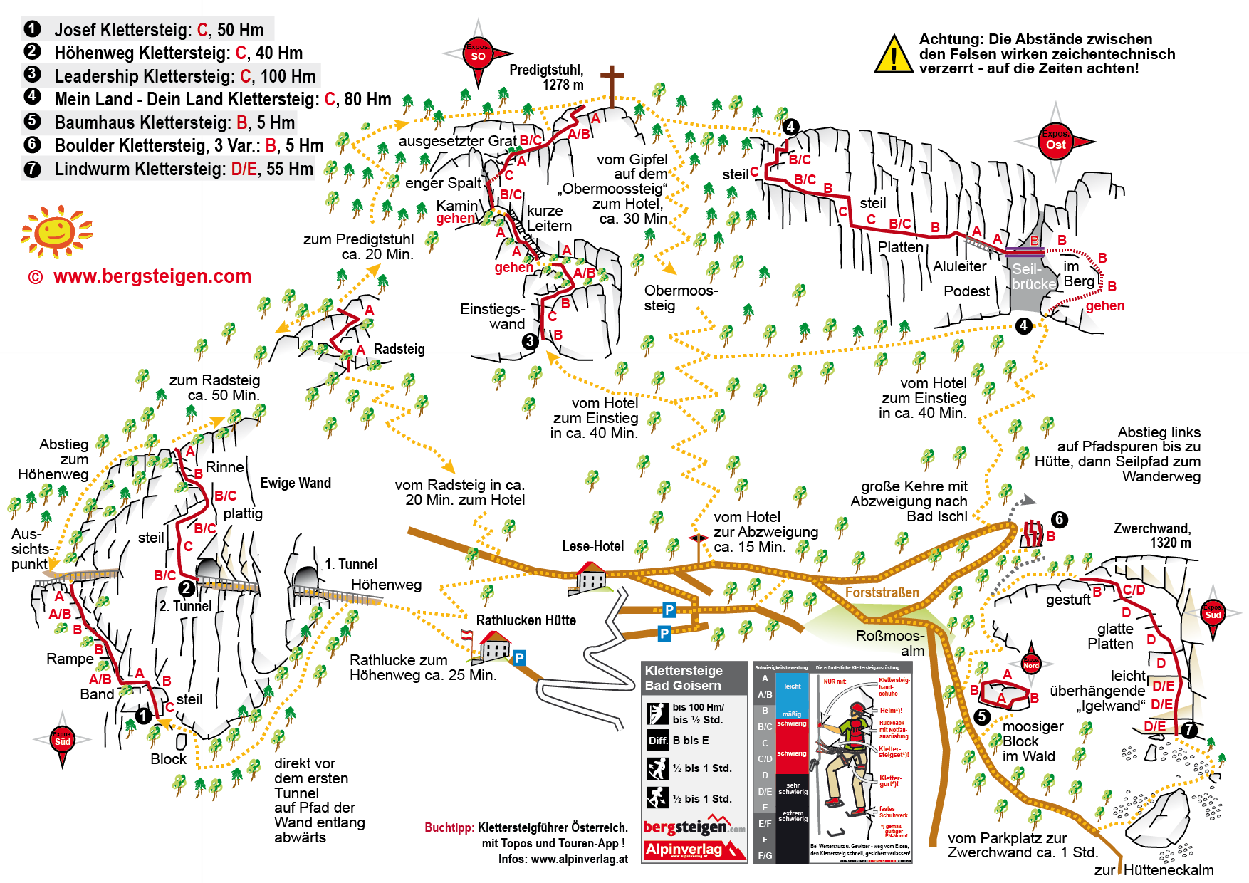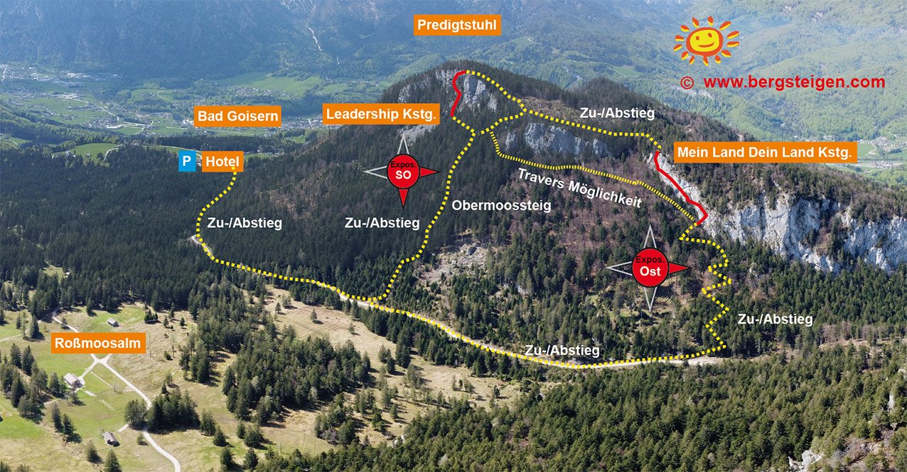Übersicht: Die Klettersteig oberhalb von Bad Goisern