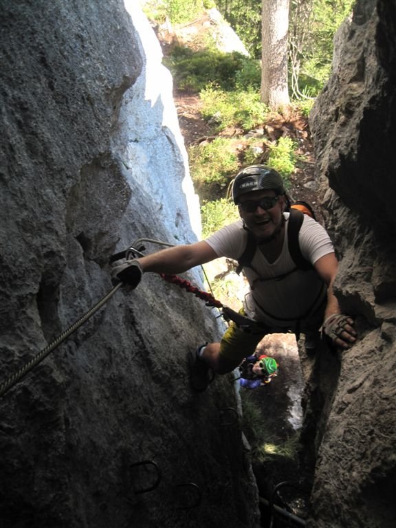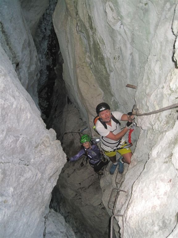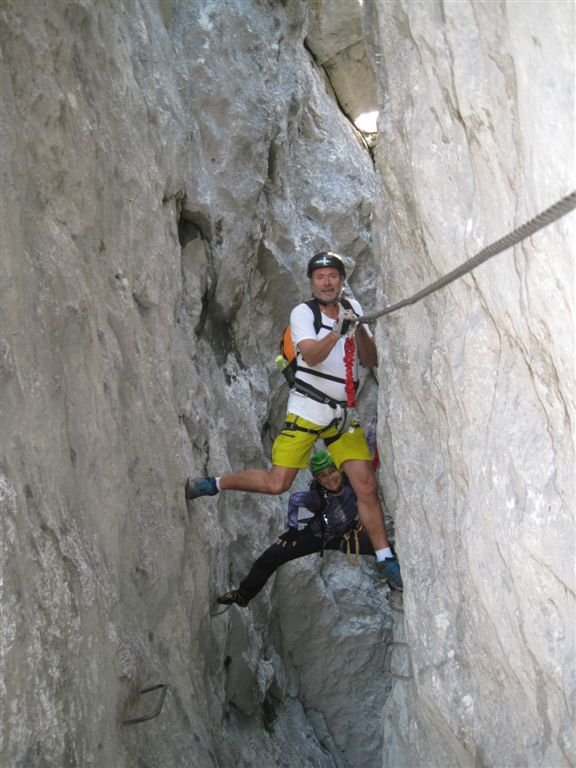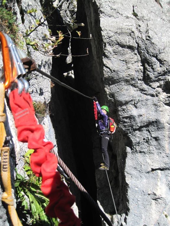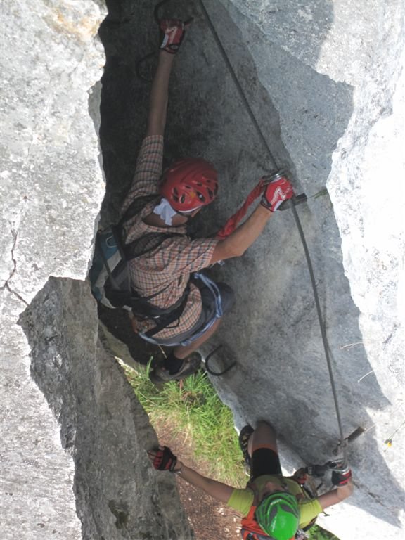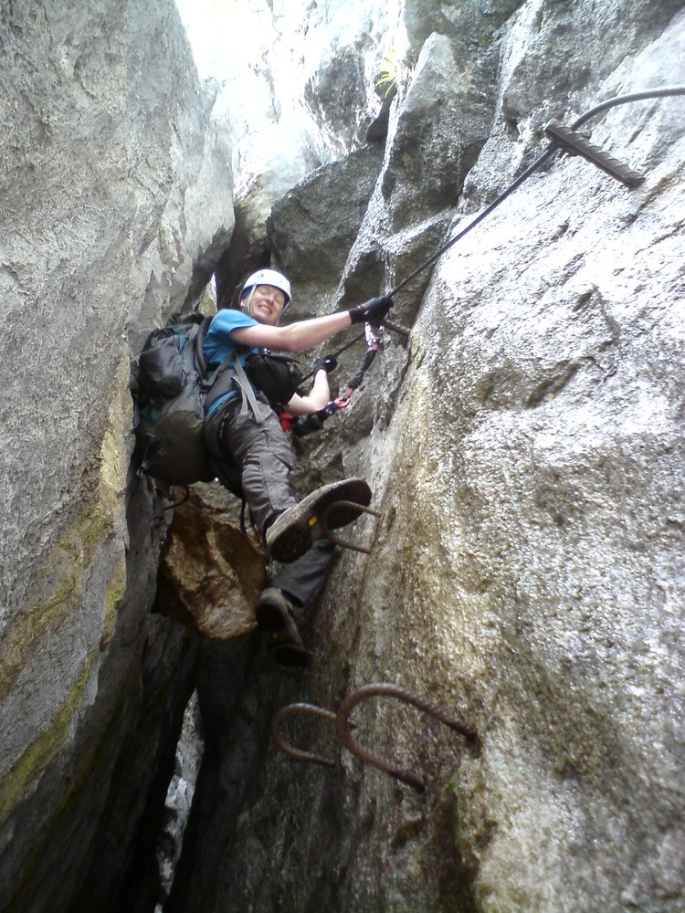 Der Klettersteig ist sehr nett und toll angelegt - somit gut für Anfänger geeignet, aber leider etwas kurz geraten. Das Schwierigste an dieser Stelle war, mit dem mehr oder weniger "fetten" Rucksack nicht stecken zu bleiben!,