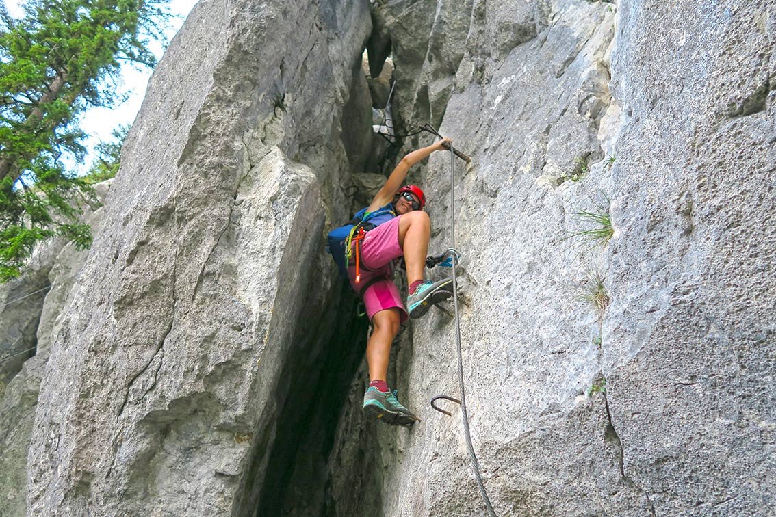 Der Beginn der schweren Spaltpassage - Leadership-Klettersteig am Predigtstuhl