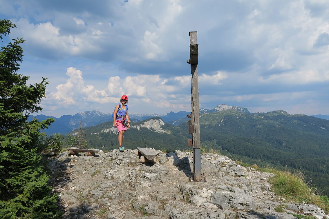 Auf dem Gipfel des Predigtstuhls nach dem Leadership-Klettersteig - hinten die Zwerchwand.