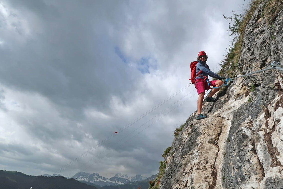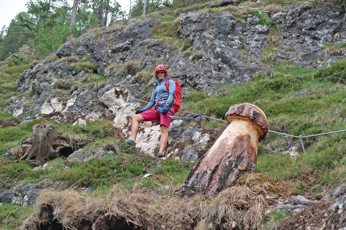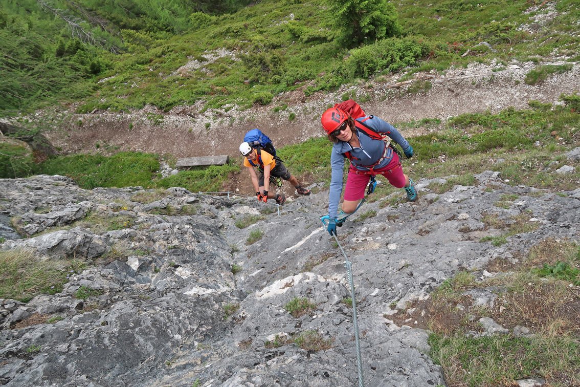 Bei Nässe ist der Klettersteig wegen der vielen Graspassagen nicht zu empfehlen.