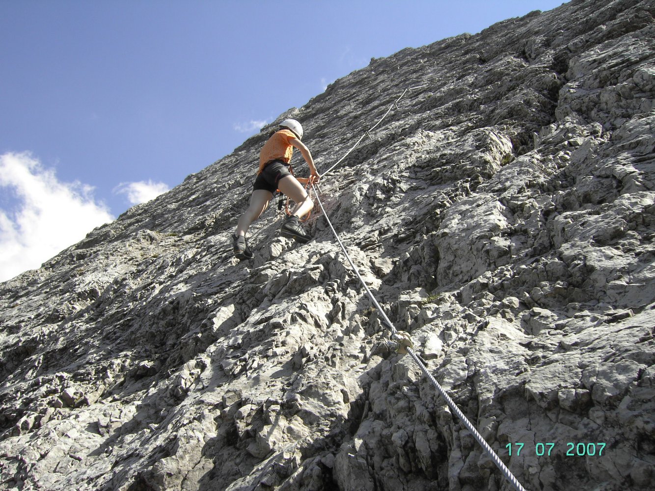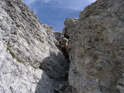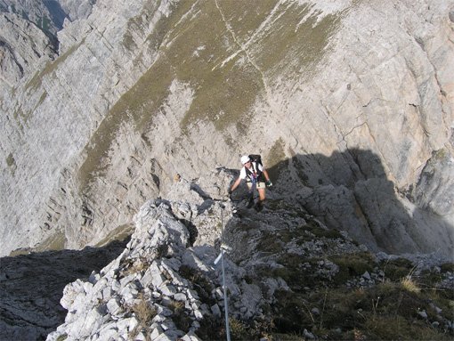 Beim Zustieg schon unten auf dem Weg anseilen, oben beim Beginn des Stahlseils ist wenig Platz (Absturzgefahr - deshalb besser unten anseilen)!
