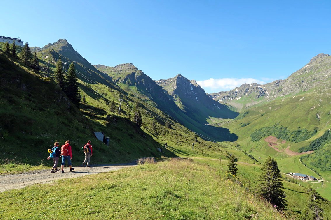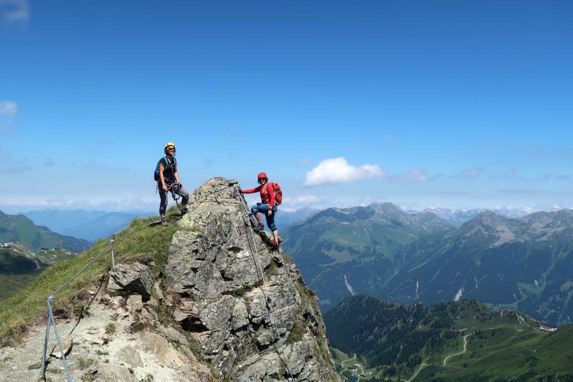 Vom Ende des Klettersteiges in ca. 15 Minuten zum Gipfel der Madrisella (2466 m). Von dort nördlich dem Kamm entlang – vorbei am Gipfel der Versettla (2372 m) - und weiter in Richtung Burg (2247 m). Vor dem letzten Grat entweder links über den sog. Burgklettersteig (A/B; kurzer, leichter Gratklettersteig) oder rechts davon auf dem Wanderweg zurück zur Bergstation.