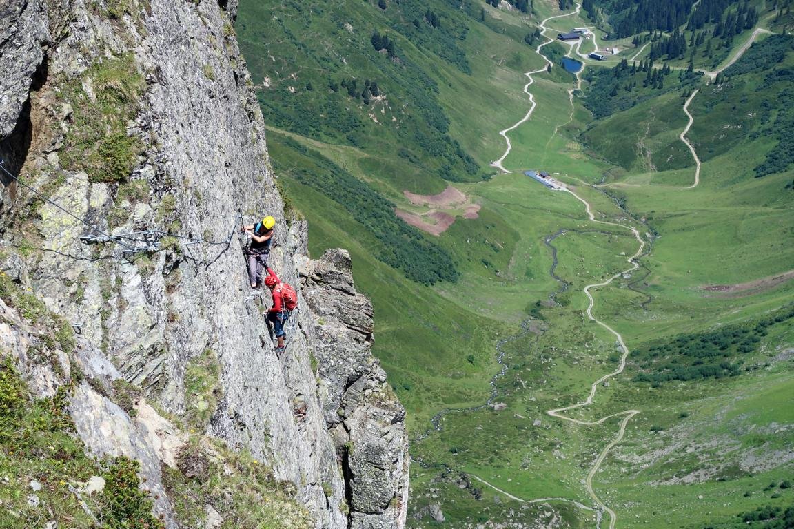 Ein richtiger Genussklettersteig mitten im Montafon – anders kann man den Eisenweg an der Nordwand der Madrisella nicht beschreiben. Geschickt wurden die zahlreichen Vertikalpassagen mit unzähligen Klammern entschärft – nur ganz kurze C/D-Passagen müssen geklettert werden. Genussklettersteiggeher finden an der mittelschweren Ferrata zahlreiche Rastpositionen und können so den Blick in die tolle Bergwelt genießen. Eine fantastische Bergwelt, ein nicht allzu schwerer Nordwand-Klettersteig und mit etwas Glück beim Zustieg ein zahmes Murmeltier bereichern diesen Bergtag.