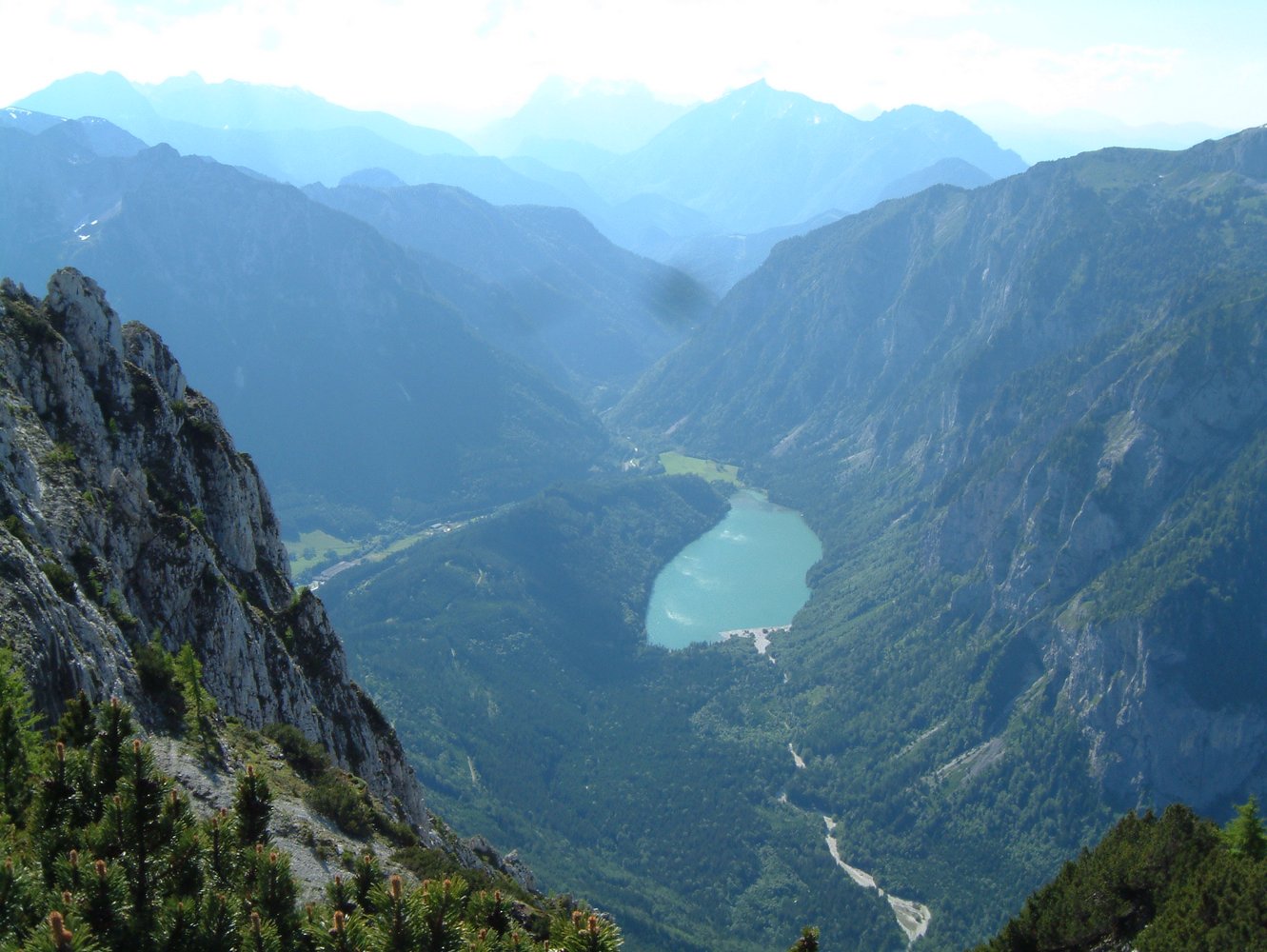 Der Markussteig bietet zwar nur eine kurze Klettersteigpassage, wartet dafür aber mit schönen Ausblicken Richtung Leopoldsteiner See und die westliche Hochfläche des Hochschwabs auf.