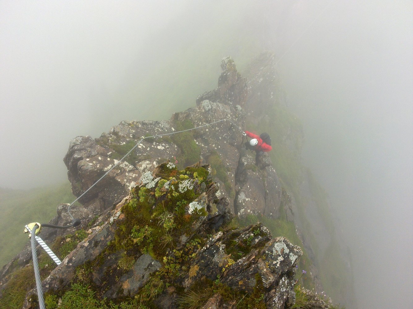 Bei Nässe ist der Klettersteig heikel (steilere Graspassagen).