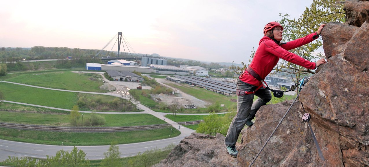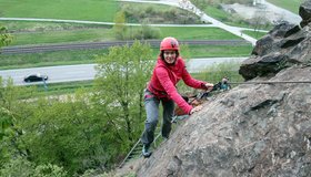 Vom Parkplatz direkt vor der Martinswand in ein paar Schritten zur Felswand - dort beginnt auch schon das Stahlseil.