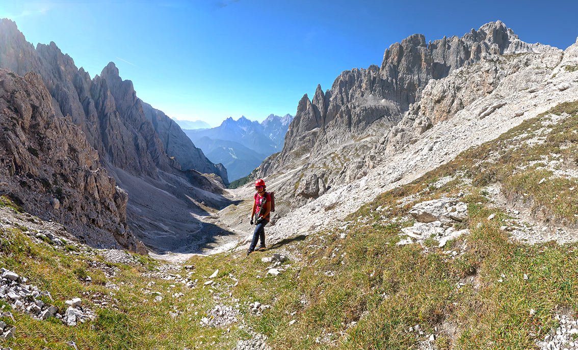Die Ferrata Mazzetta ist ein nicht so überlaufener Klassiker am südlichen Ende der Sextener Dolomiten. Die Ferrata wird in der Regel immer als Rundtour gemacht - man steigt zuerst zur Forcella de Ambata auf, genießt dann hinten auf der Südwestseit die grandiose und einsame Bergwelt beim Gera Biwak und klettert dann als Finale auf der Ferrata Mazzetta wieder auf die Ostseite. Die längere Tour ist lohnend, aber nicht ganz leicht - reine Klettersteiggeher werden schon beim Aufstieg zur Forcella de Ambata überfordert sein, nur der alpin versierte und sehr trittsichere Geher wird oben in der Scharte ankommen. Einsame, landschaftlich sehr eindrucksvolle Runde, die man als Dolomiten-Klettersteig-Liebhaber aber auf jeden Fall gemacht haben sollte.