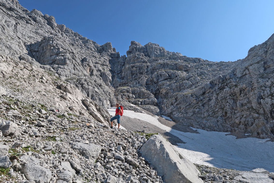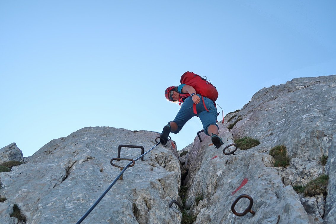 Nur wenige Passagen bis B - viele ungesicherte Kletterstellen (bis 1+).
