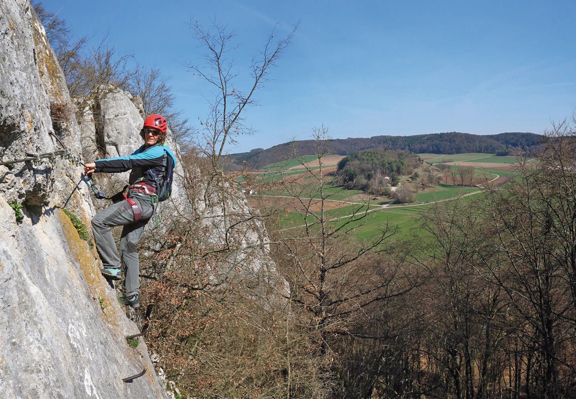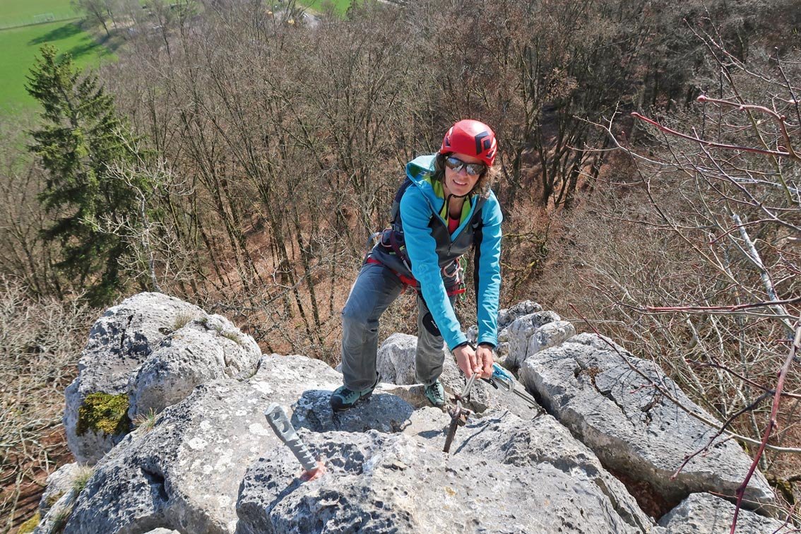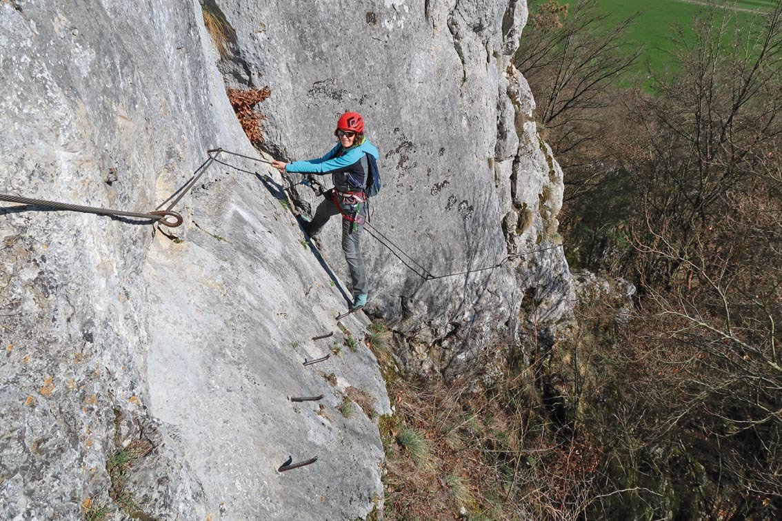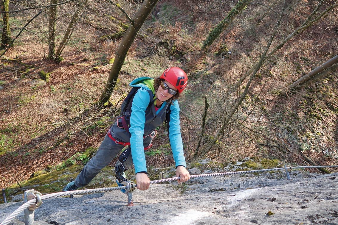 Klettersteigausrüstung und Helm.