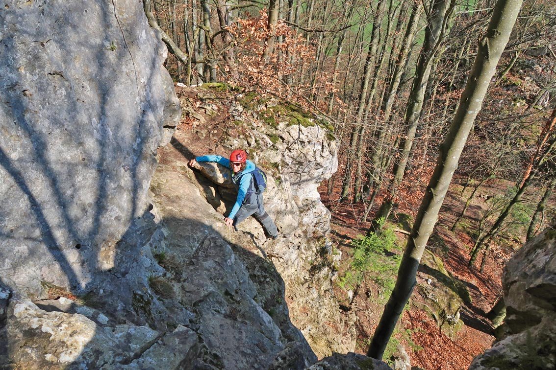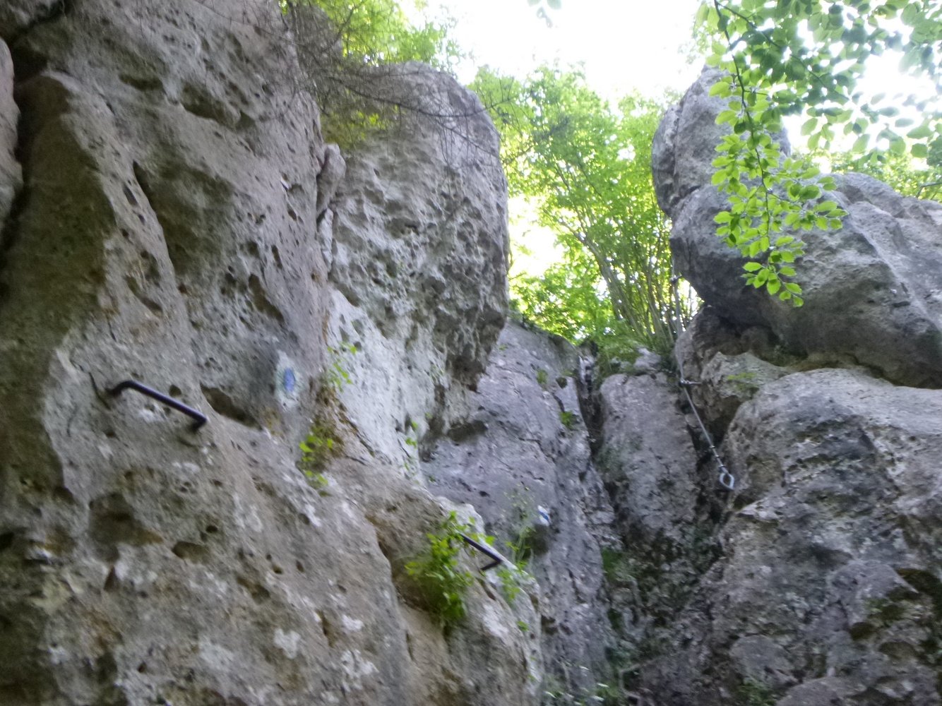 Bei der Vereinigung mit der roten Variante entweder über die Oberlandsteig Rot zurück (zwei kurze Aufschwünge A/B) oder man steigt abwärts und wandert auf einem der Wanderwege zurück zum Dohlenfelsen.