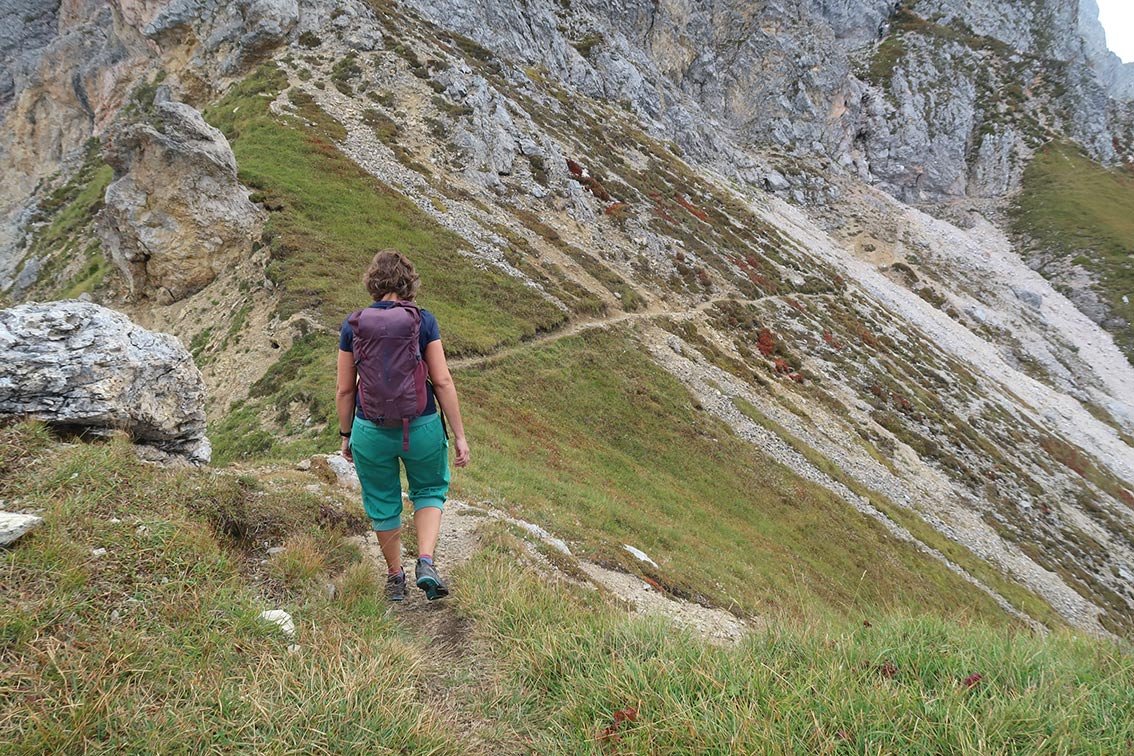 Vorsicht, im Frühjahr und im Herbst Schneereste in der Nordwand! Von der Scharte beim Einstieg kann man auf einem sehr steilen Pfad direkt zum Pragser Kaser absteigen (Notabstieg).