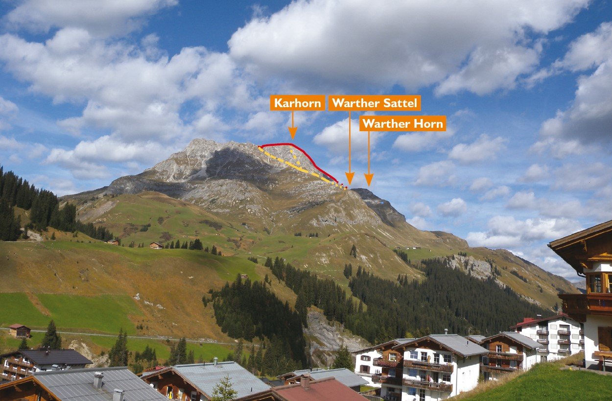 Von der Bergstation des Steffisalp-Express den Wegweisern Richtung Karhorn folgen. Auf einem breiten Wiesensattel (Bergstationen von zwei Sesselbahnen) links abbiegen und zum Warther Sattel aufsteigen. Vom Warther Sattel südseitig zum Karhorn-Normalweg, an diesem vorbei und auf Steigspuren in einem Sattel zum Beginn des Klettersteiges aufsteigen. Der alternative Zustieg vom Tal dauert eine knappe Stunde länger als angegeben.