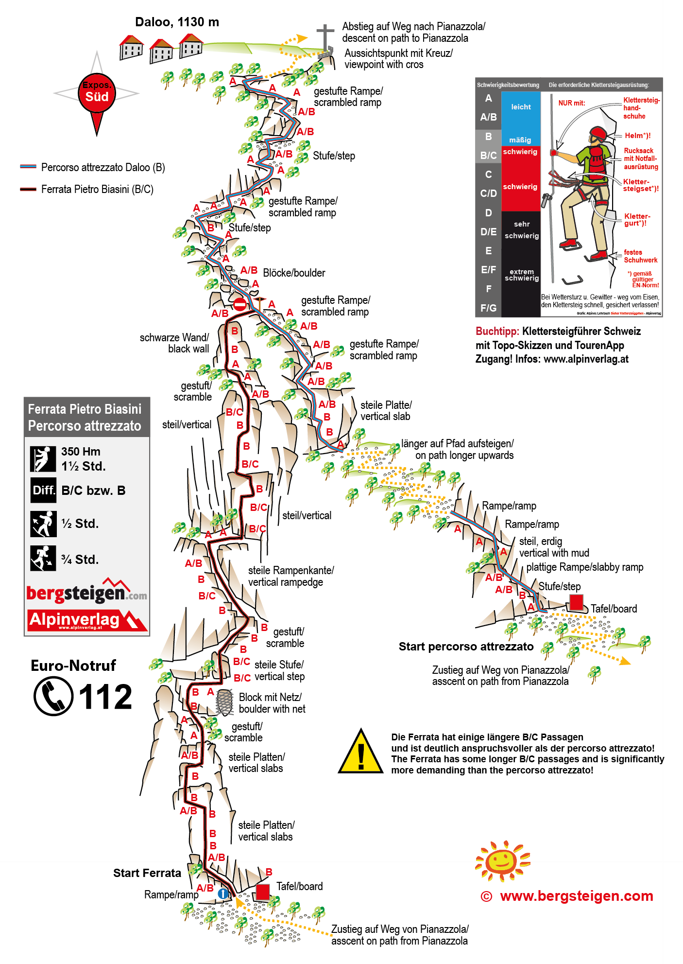 Die Ferrata Pietro Biasini hat längere B/C-Passagen und ist deutlich anspruchsvoller als der Percorso Attrezzato (B)!