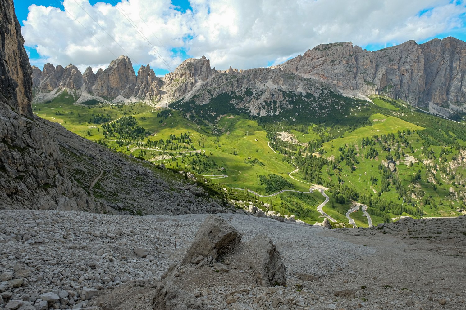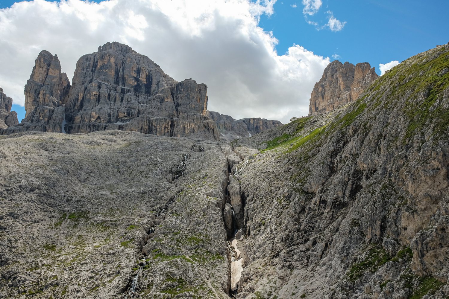 Übersicht Pisciadu Klettersteig mit den Abstiegen Val Setus und Mittagstal