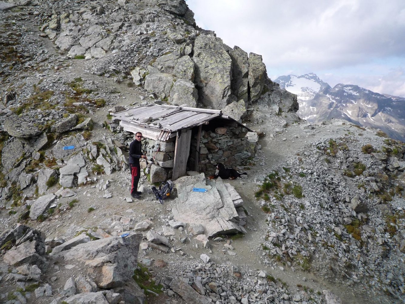 Von der Chamanna dal Stradin auf einem der weiß-blau markierten Weg mit am Ende viel Block- und Geröllgelände hinauf zur Fuorcla Albana (2870 m, mit Nothütte).