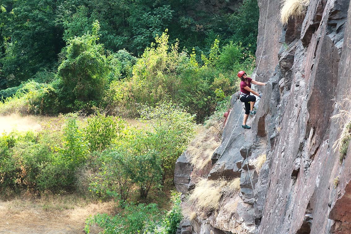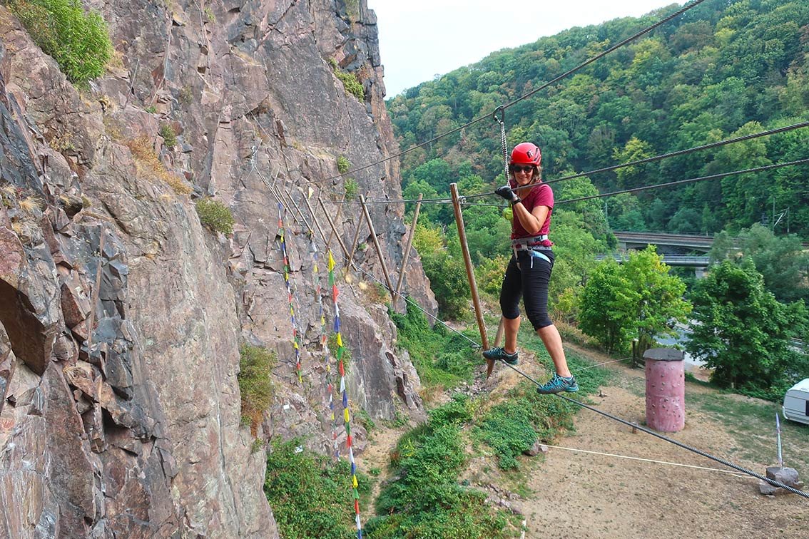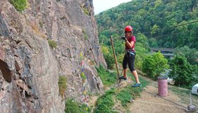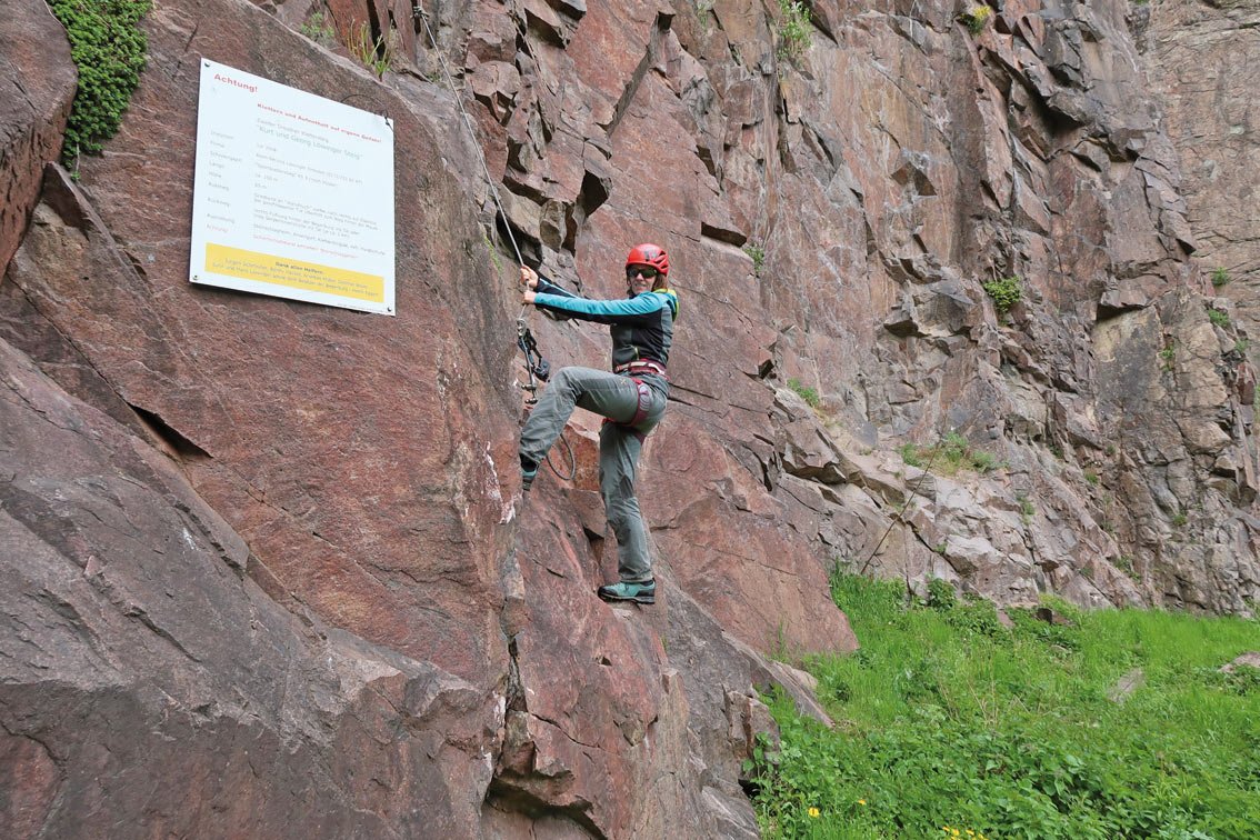 Die Klettersteige am Plauensche Grund, neben der Autobahn befinden sich auf einem Privatgrundstück mittlerweile zwölf Klettersteige - eines der größten Anlagen abseits der Alpen! Bei der Eröffnung der Steige im Jahr 2004 zählte die ehem. Sachsenstiege zu den schwersten Eisenwegen in Deutschland. Derzeit kommt die Costica-Verschneidung dem höchsten Schwierigkeitsgrad auch sehr nahe (glatte Wand, wenig Trittstifte und überhängend). Ein Klettersteig wurde Kurt und Georg Löwinger gewidmet, die mit Willy Beck im Jahr 1934 als „Sachsendreier“ den ersten ernsthaften Begehungsversuch der Eiger-Nordwand unternahmen. Die Felsen im Plauenschen-Grund haben eines mit der Eiger-Nordwand gemein - sie sind instabil, daher ist die Sachsenstiege zurzeit (Mai 2019) gesperrt.