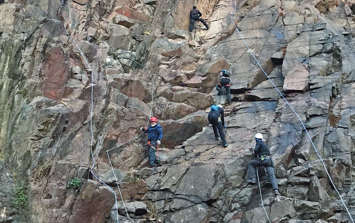 Gut mit Stahlseil und wenigen Trittklammern gesichert.