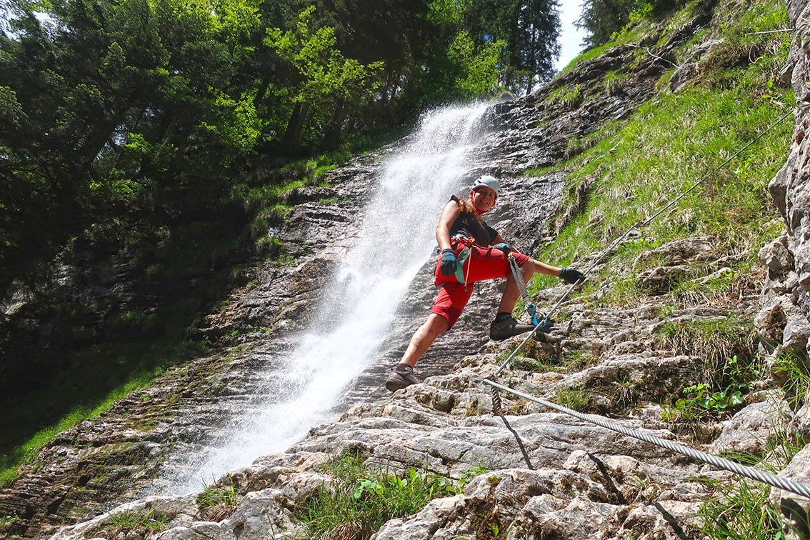 Man klettert direkt neben dem Wiesler Wasserfall - Postalmklamm Klettersteig