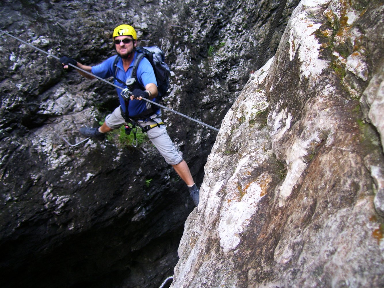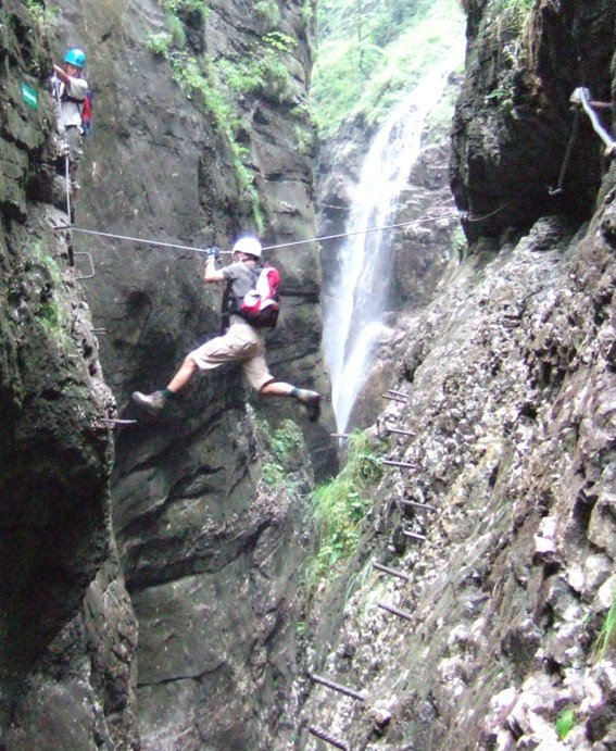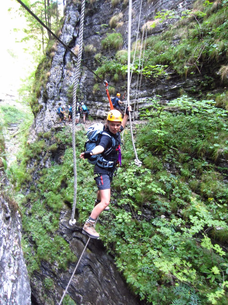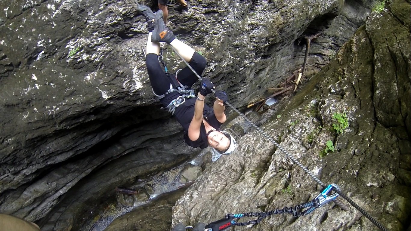 Beim Testen des "Gattsprunges" - der ist weiter als man denkt....  (Postalmklamm Klettersteig).