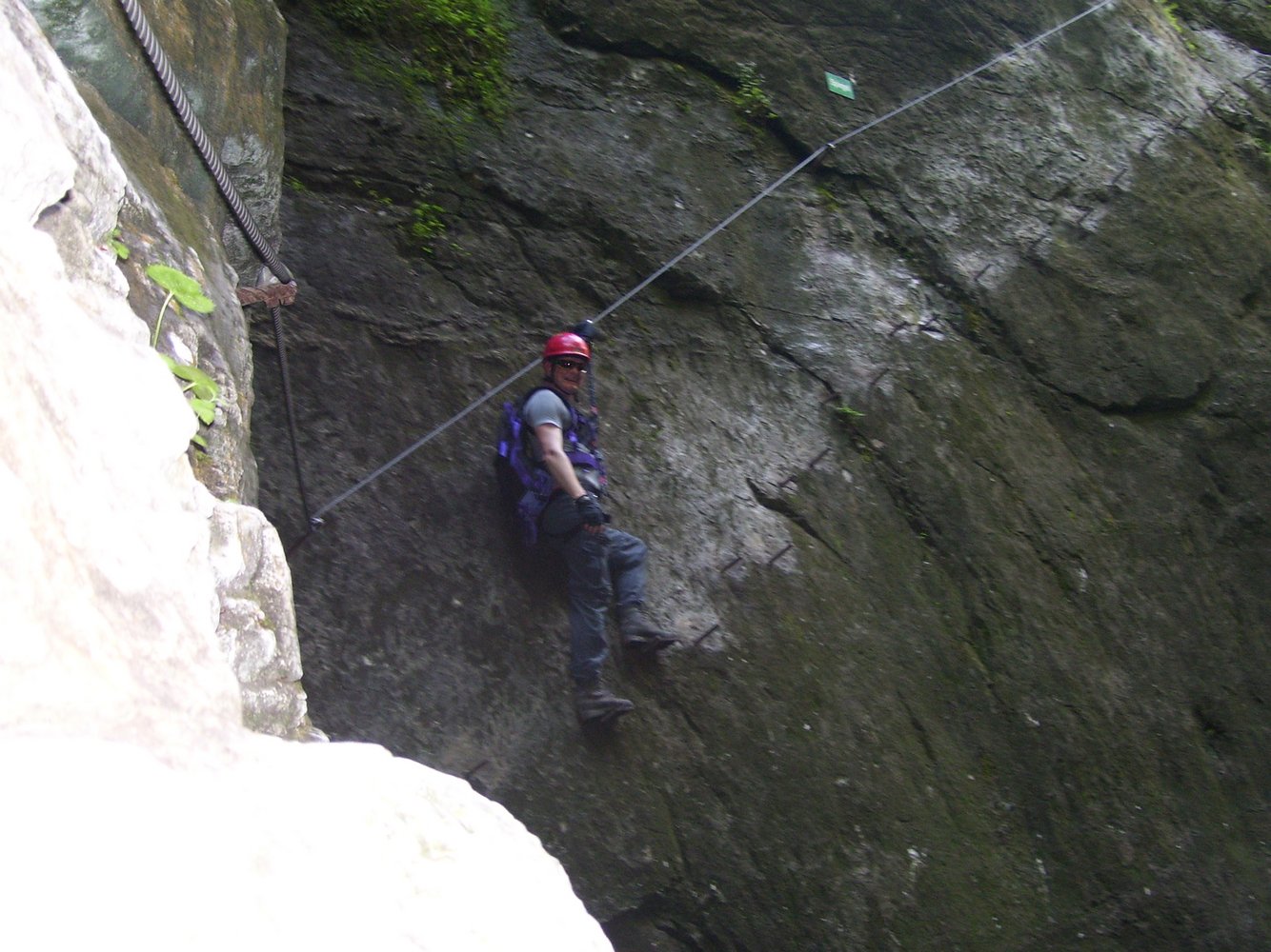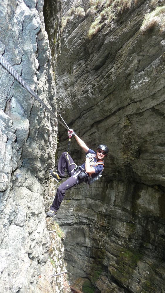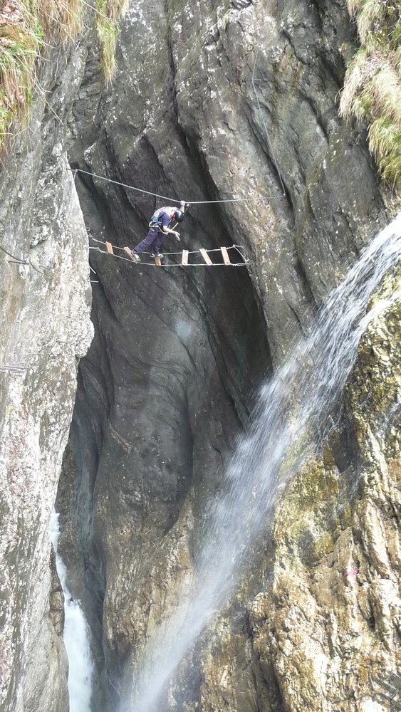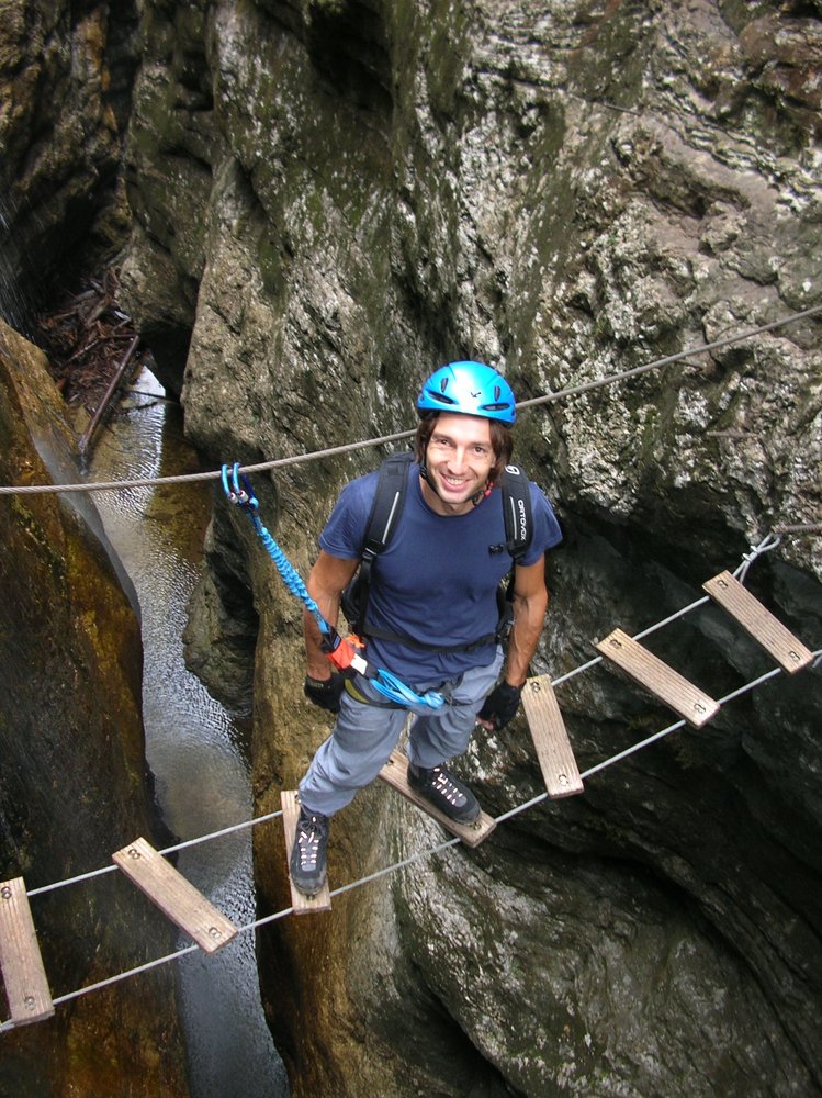Beim Testen des "Gattsprunges" - der ist weiter als man denkt....  (Postalmklamm Klettersteig).