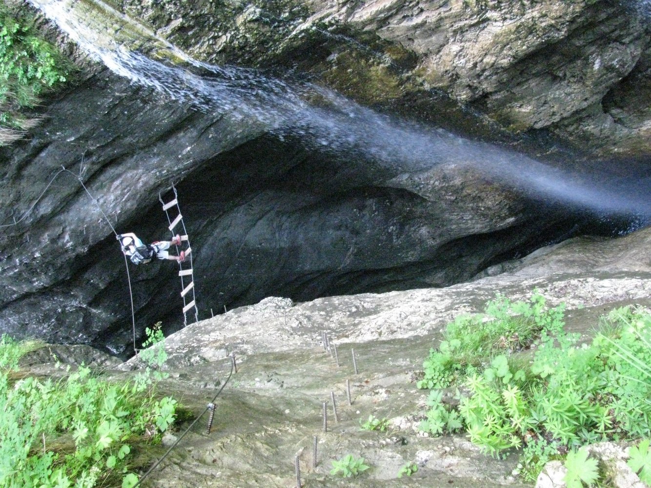 Die Passage beim Wiesler-Wasserfall - Postalmklamm Klettersteig