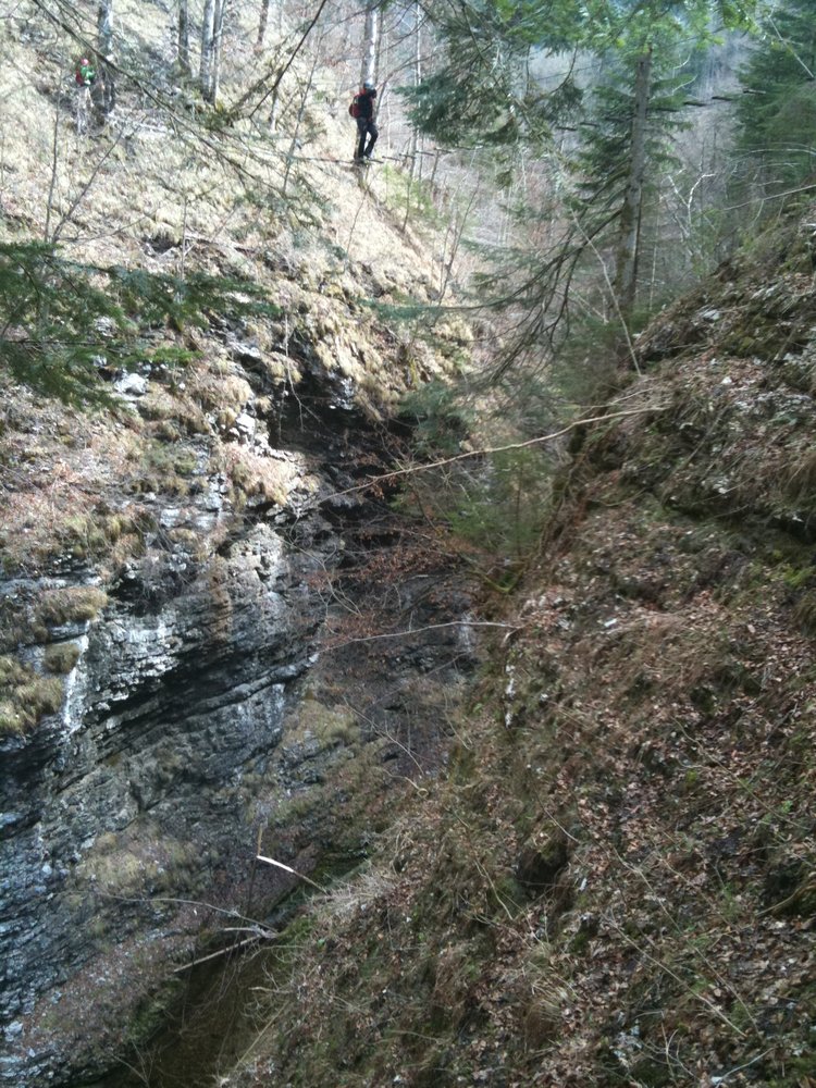 Beim Testen des "Gattsprunges" - der ist weiter als man denkt.... (Postalmklamm Klettersteig).