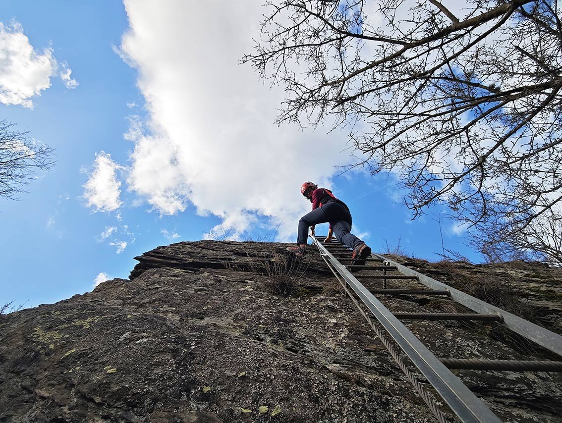 Nur für Ungeübte und Kinder ist ein Klettersteigset (und evtl. Sicherungseil) nötig.