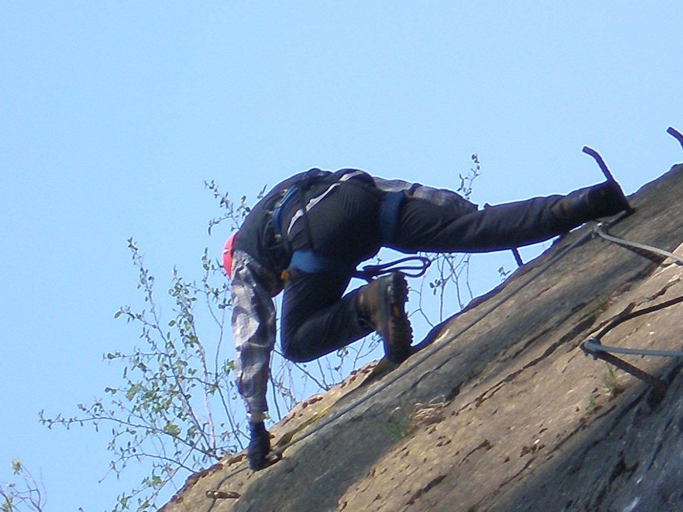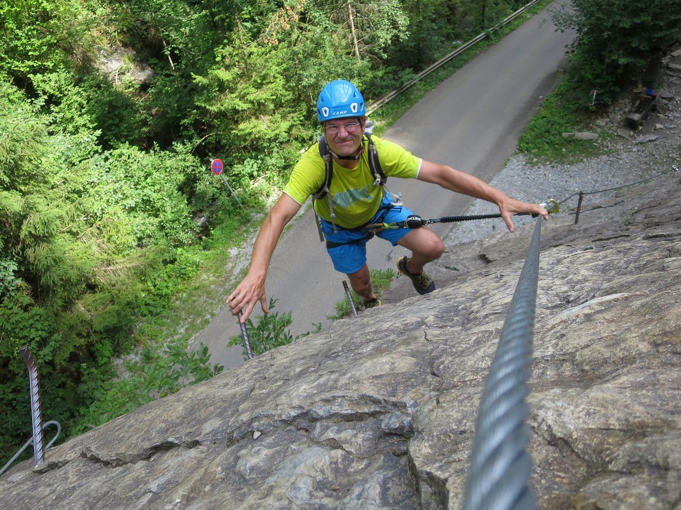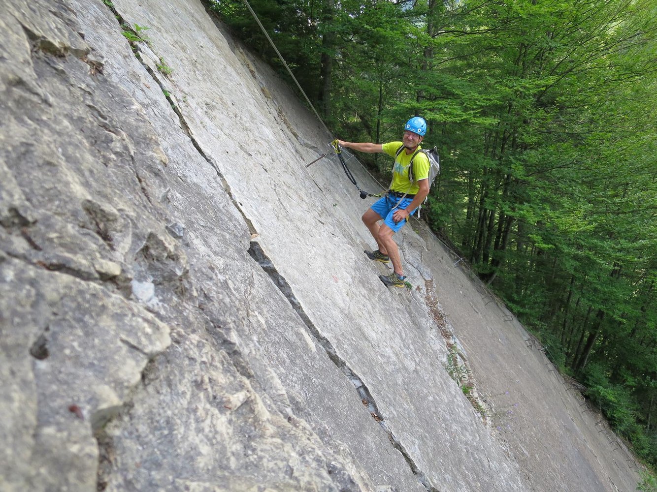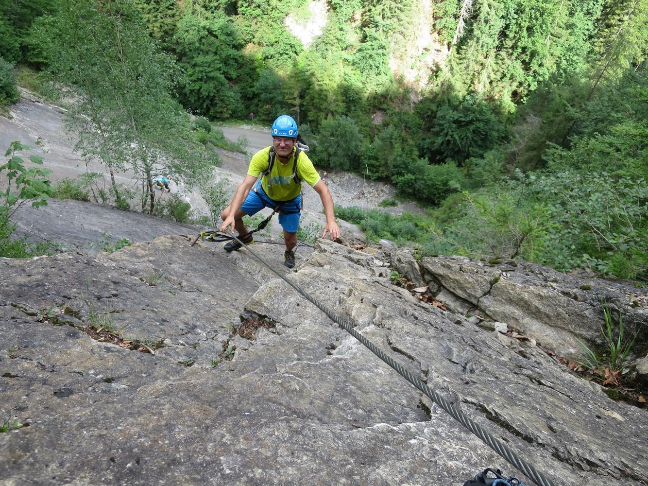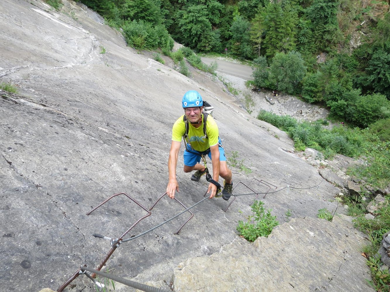 Mittel- bis schwerer Klettersteig, der mit C bewertet ist. Die C-Stellen bilden glatte geneigte Platten, die nur mit einem Sicherungsseil versehen sind. Der Ausstieg ist auch unangenehm. Bei Nässe sollte man den Steig nicht begehen!
