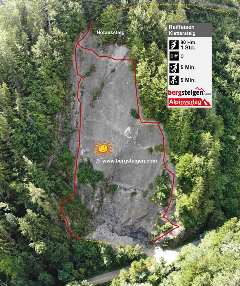 Der Raiffeisen-Klettersteig führt rund um den in einem ehemaligen Steinbruch befindlichen ÖAV-Klettergarten Klammgraben. Der 2001 errichtete Klettersteig ist mit Stahlseilen, Trittstiften und Eisenklammern ausgestattet. Die Gesamtlänge des durchaus steilen Klettersteiges beträgt etwa 250 m.