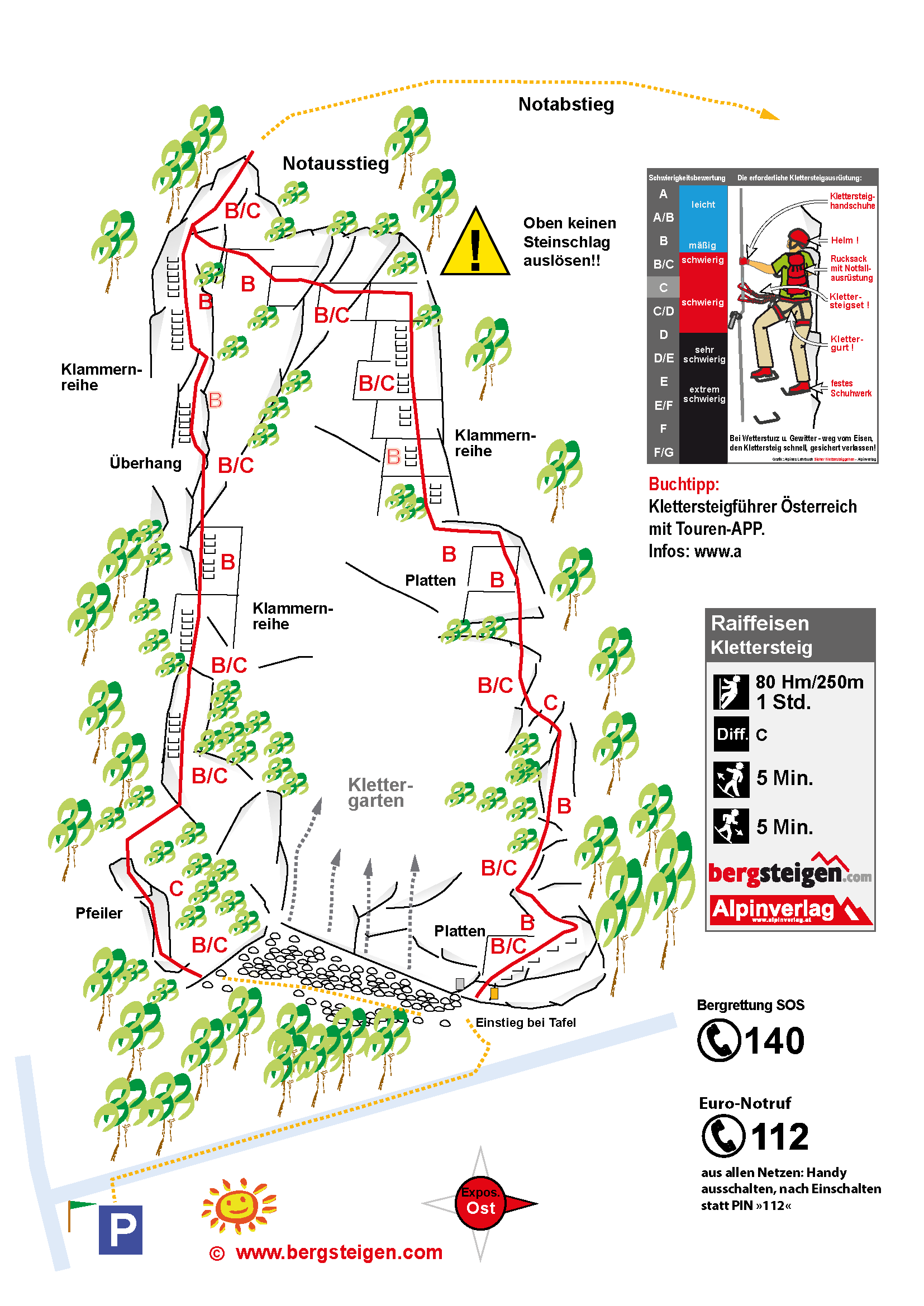 Vom 1. November bis 30. April herrscht Wintersperre. Länge Klettersteig: 250 m