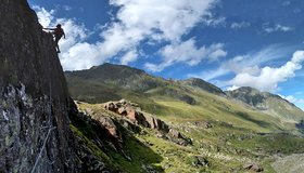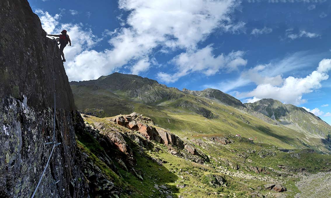 Kurzer, aber landschaftlich interessanter Klettersteig direkt bei der Neuen Regensburger Hütte. Der Klettersteig wurde als Testpice für die Stubaier Höhenweg Wanderer - von denen die meisten eine Klettersteigausrüstung dabei haben - gebaut. Es gibt einen kleinen Übungsklettersteig beim Zustieg, wer diesen problemlos meistert, kann sich am längeren Klettersteig versuchen. Wer den Besuch auf der Regensburger Hütte noch mit einer Besteigung der 3084 m hohen Kreuzspitze (kurz seilversichert, A/B) kombiniert, hat auch gleich noch einen 3000er mit eingetütet.