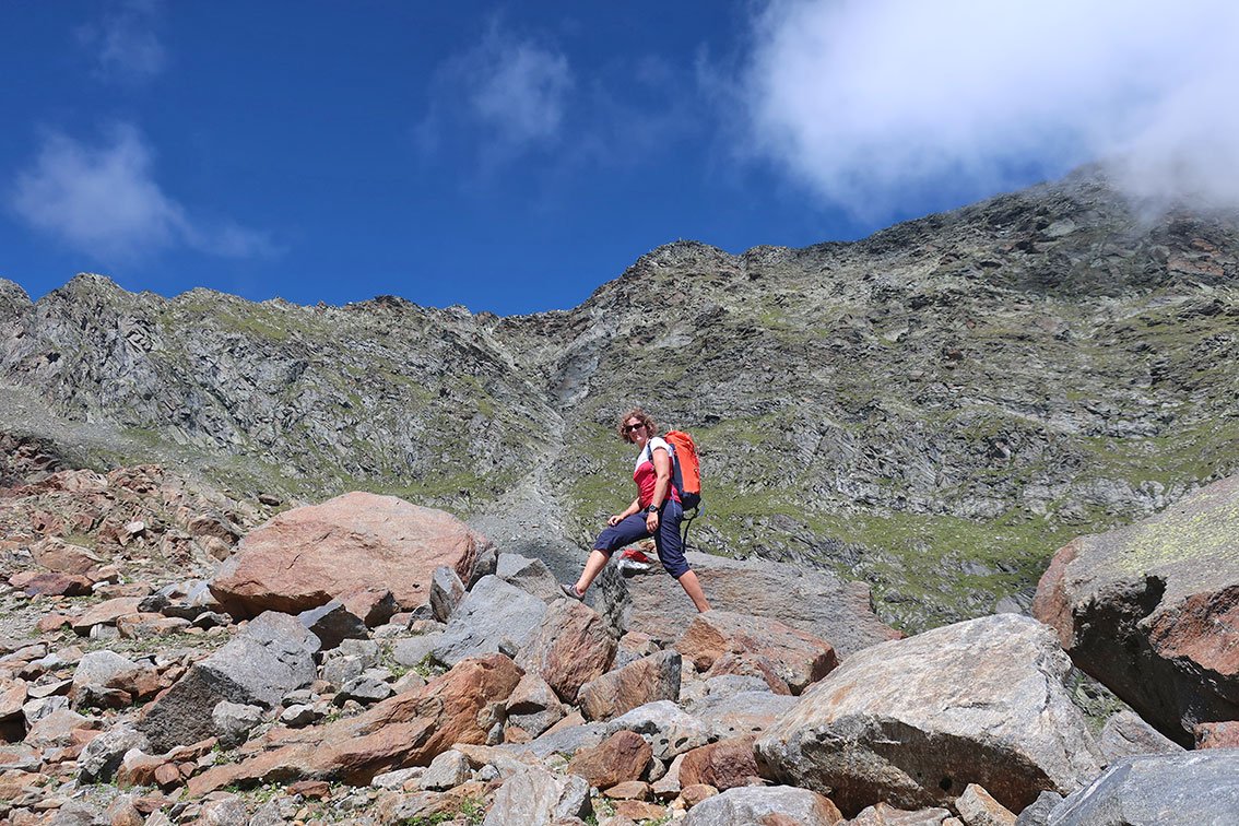 Vom Ende des Klettersteiges auf dem Rücken zurück zur schon sichtbaren Neuen Regensburger Hütte und von dieser auf dem bereits bekannten Zustiegsweg ins Tal.